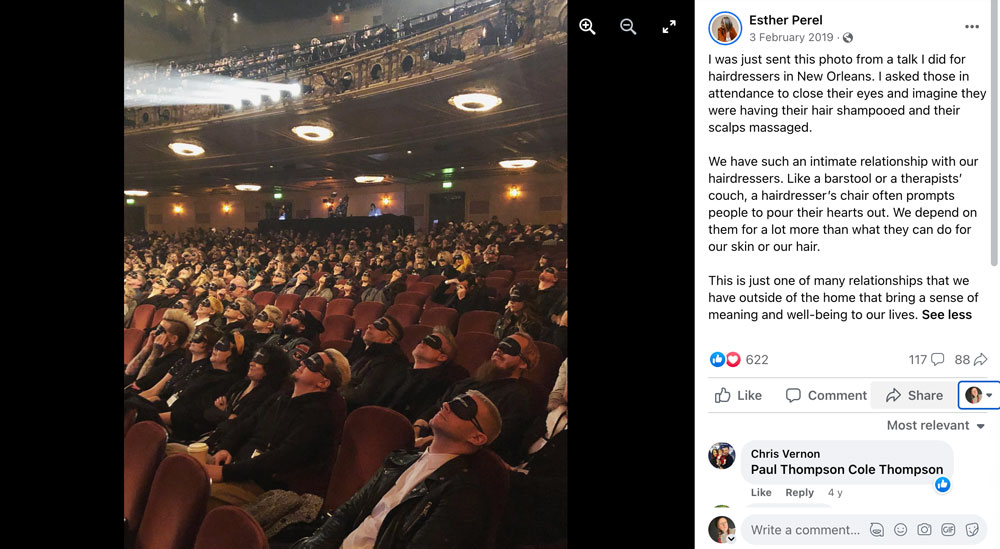 We googled every one of these references and couldn’t find them. Hal Herzog mainly writes about the impact of pets on human health, attitudes towards the use of animals, and the evolution of pet-keeping. Although Samara O’Shea is legit and writes for the Huff Post our google search returned a generic “It looks like there aren't many great matches for your search” and the closest relevant story that we could find from Esther Perel was this Facebook post at a hairdresser’s conference in New Orleans: