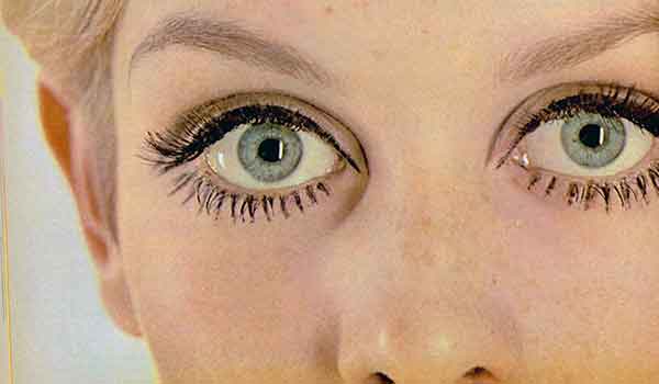 A circling of kohl all around the eyes - the original rebellion, an introduction to eye makeup that has a long lasting connotation to alternative culture.