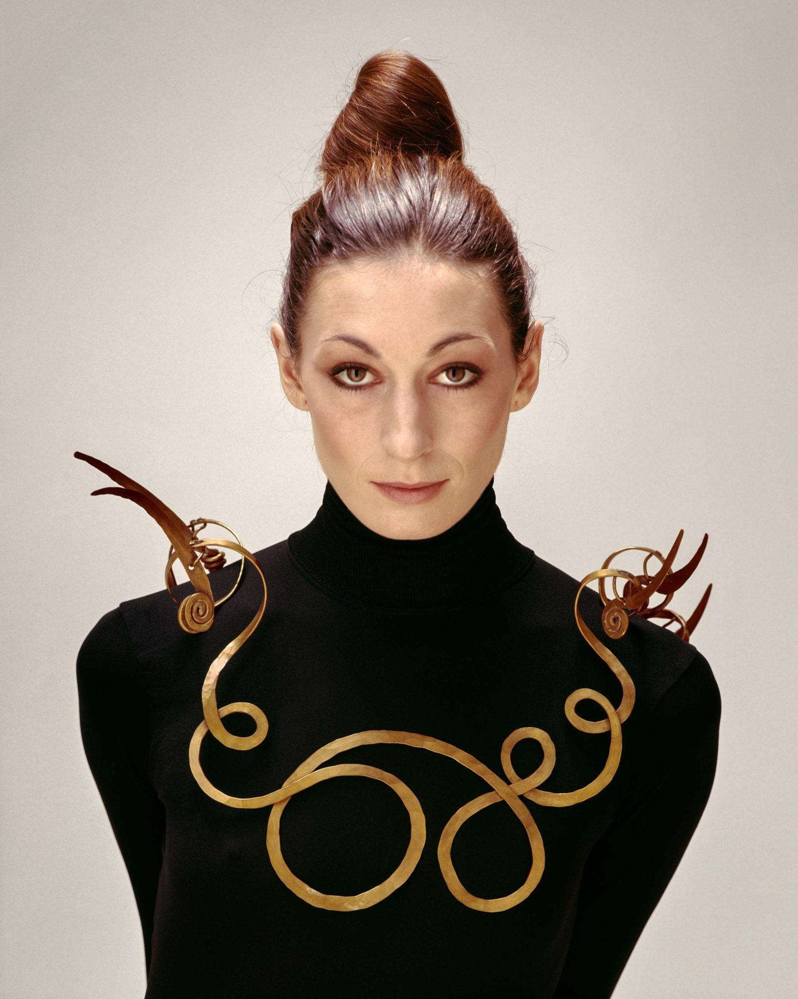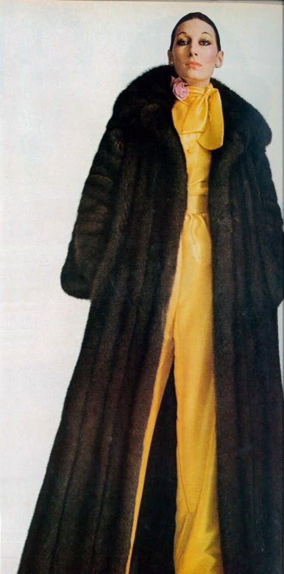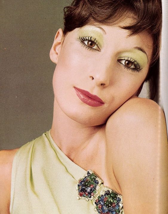 A slick-back style for Anjelica Huston in 1972. Note the matching yellow eyeshadow - power move.