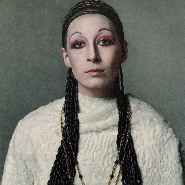Braids, pencil-thin brows and pink eye shadow. Photographed by her friend, Richard Avedon, in 1970.