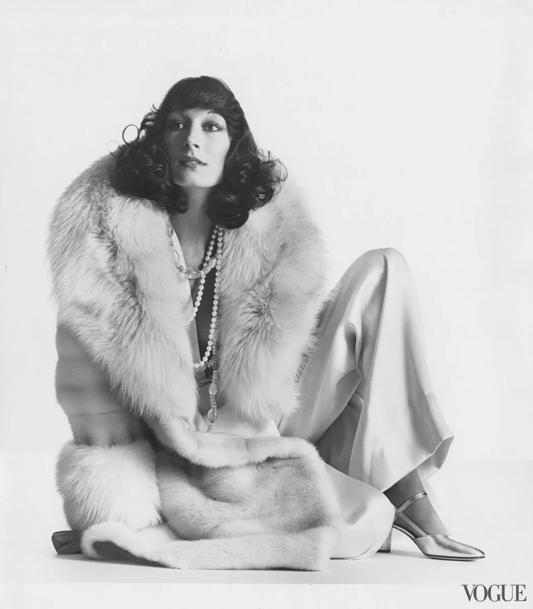 Sultry curls with a touch of disco for Vogue, 1973.