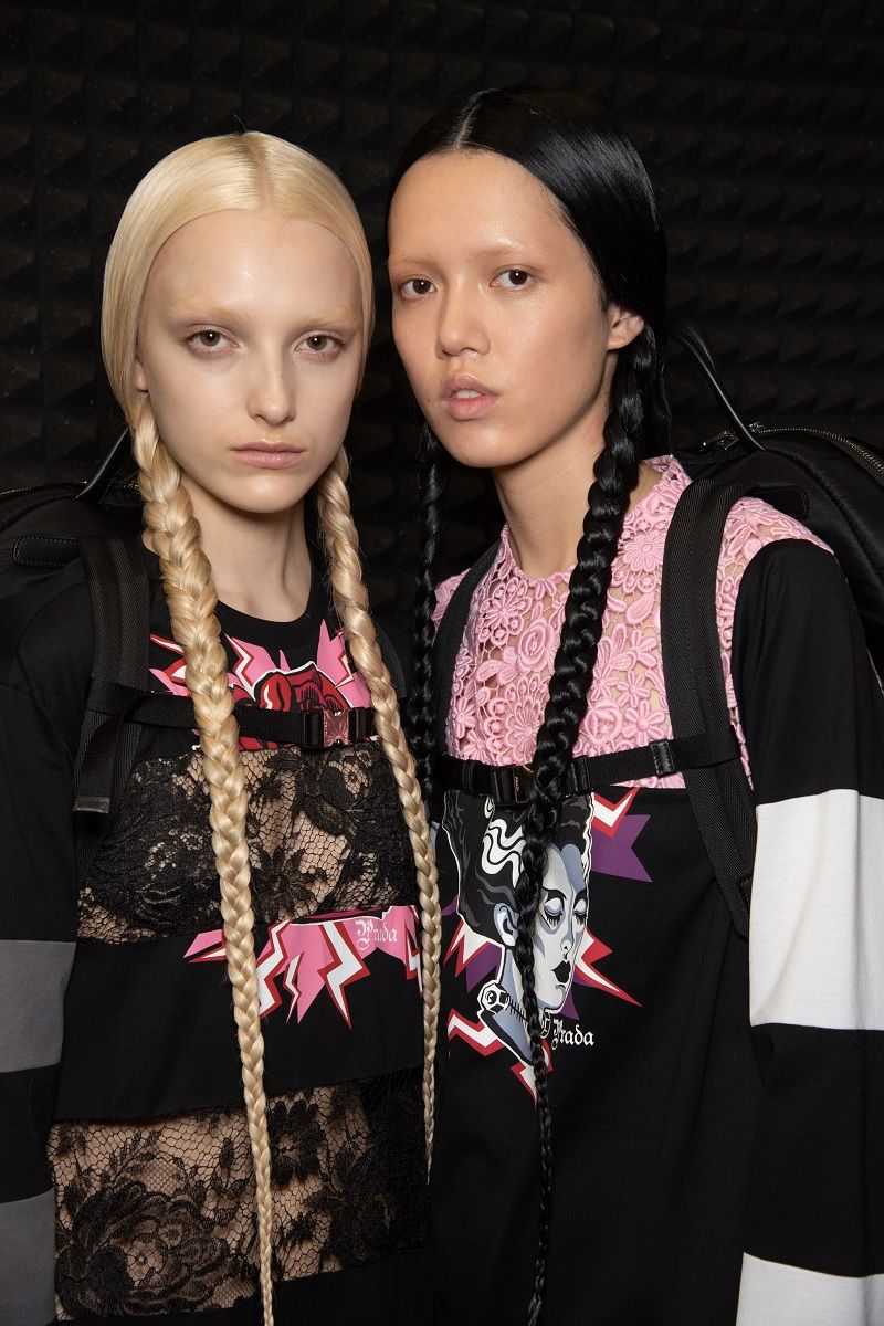 Bleached brows are a mainstay backstage at Prada