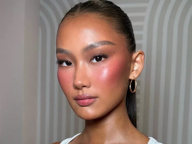The TikTok trend that sees a sunset colour gradient blended on the cheeks, topped off with a highlighter. Think tones of red, pink, orange and peach that sit high on the cheekbones and make quite a statement. This blush trend is perhaps not your everyday-pop-into-the-supermarket look, but rather apply on yourself, ready for your social media selfie.