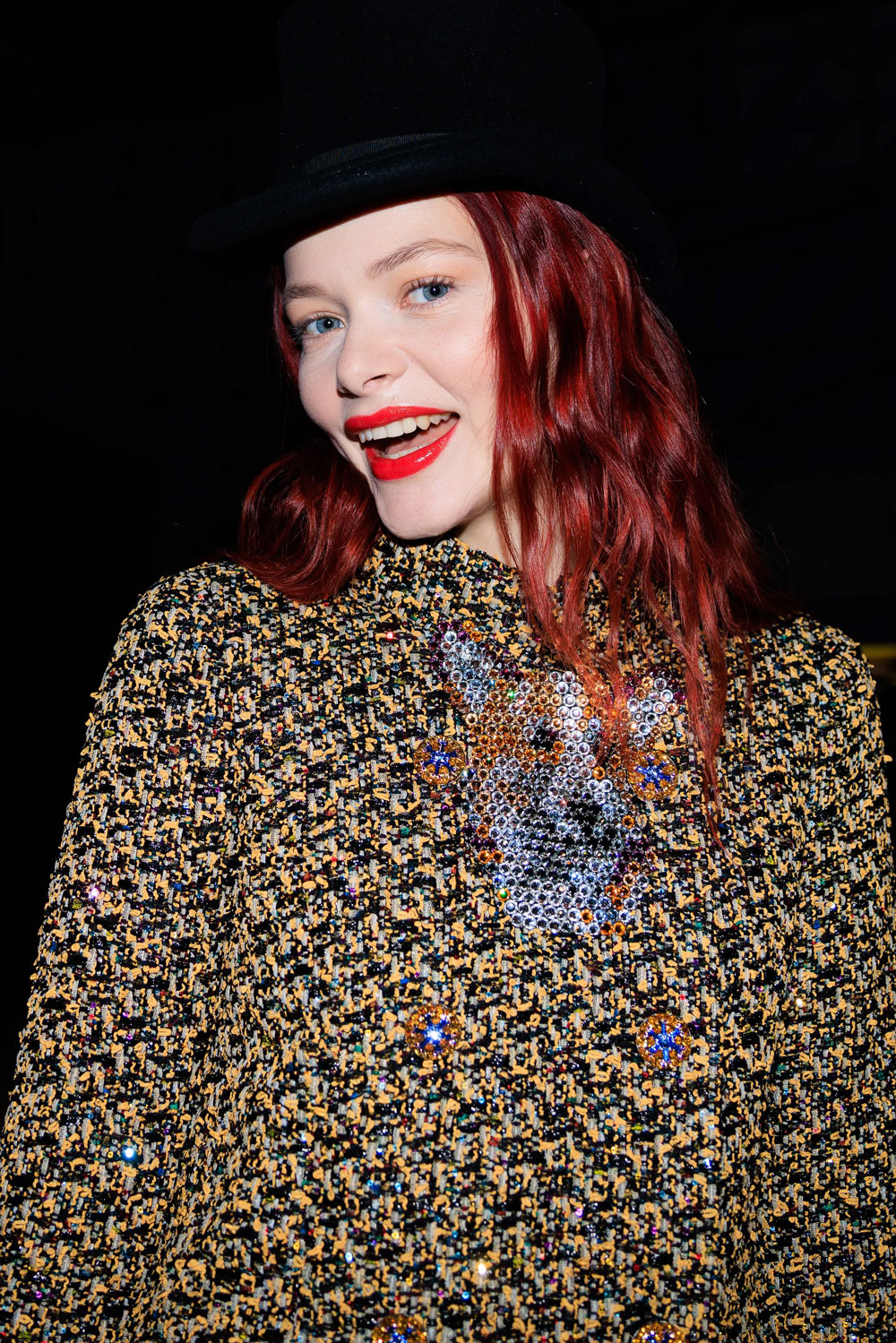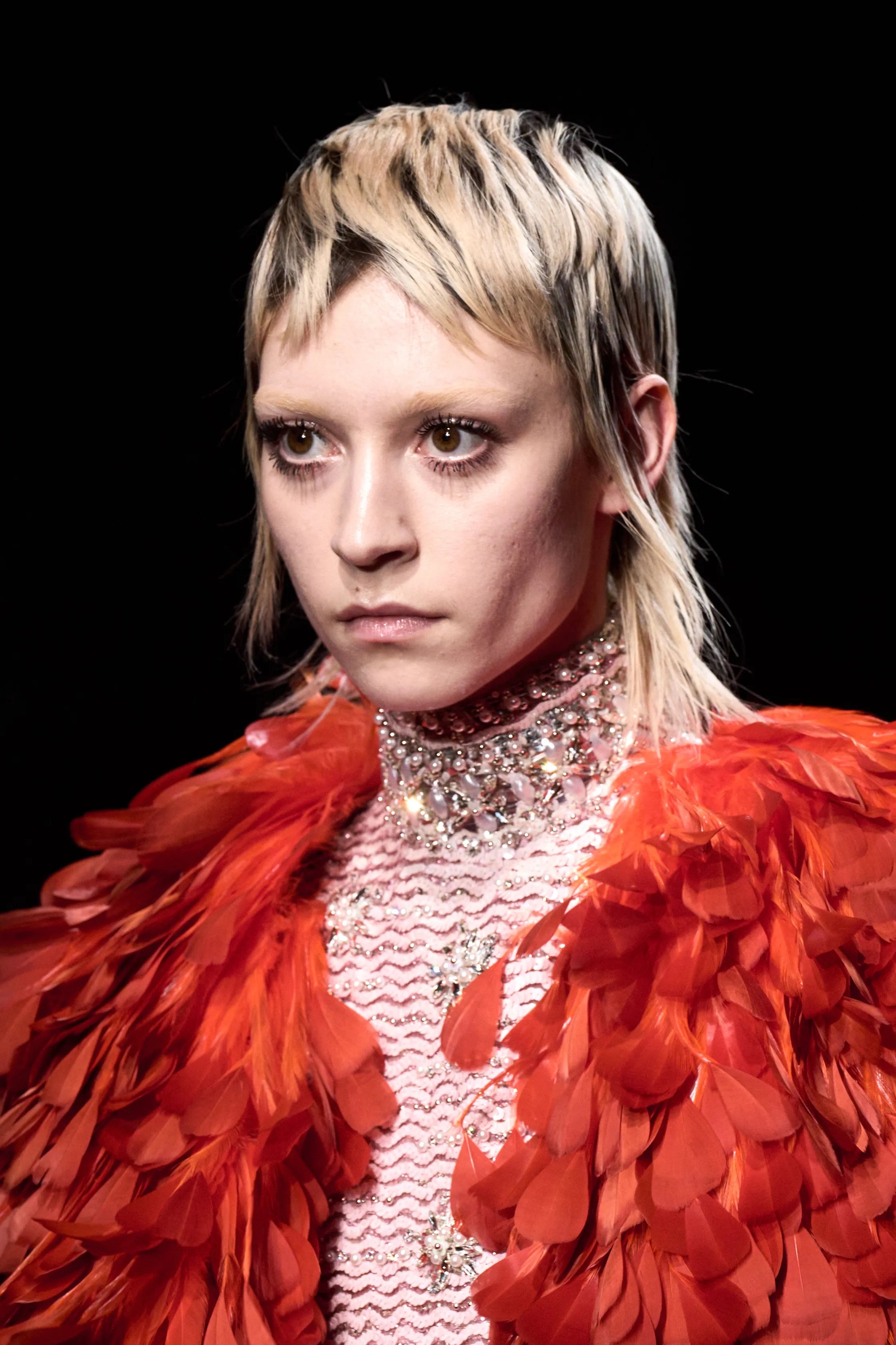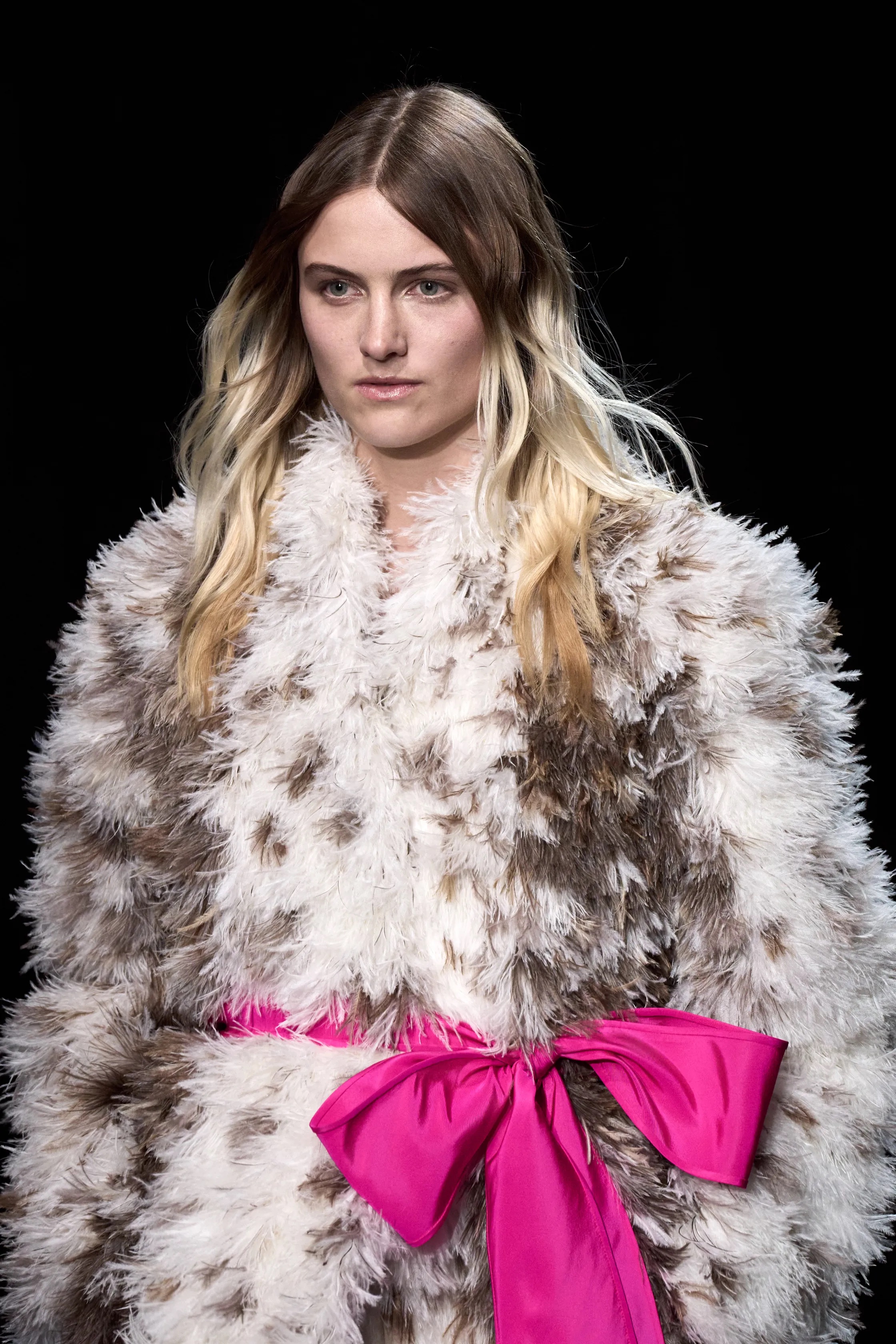 Is it grunge's turn to make a resurgence? Dark roots were effortlessly cool on the scene at Valentino; with barely there makeup and extravagant jewels and coats, the vibe is all about the individual, being free and being yourself.
