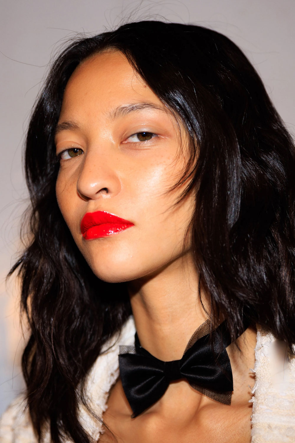 A glossy red lip will never do you wrong. With clean skin and no eye makeup, red lips make for a super chic statement on the Chanel runway.