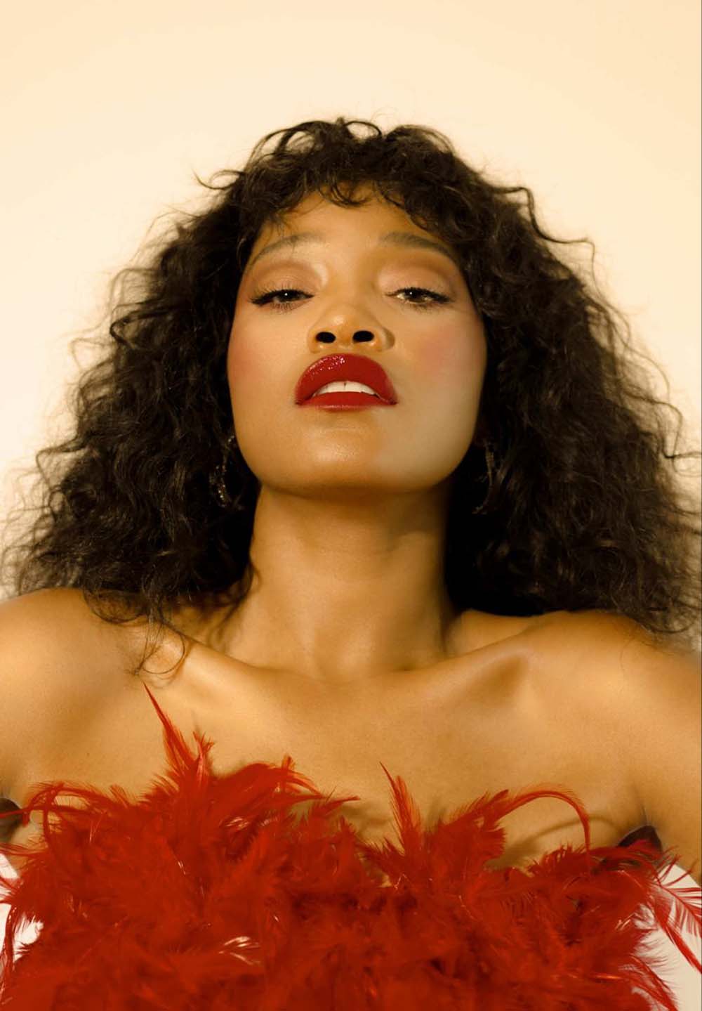 A sultry, seductive and scarlet feathered Keke Palmer for Playboy magazine in 2023.