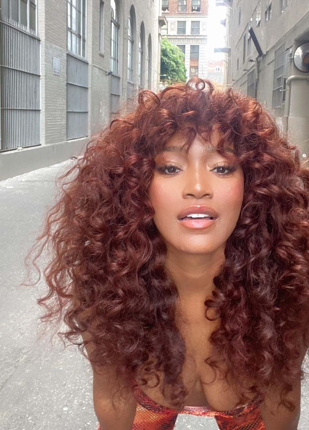 It's difficult for our obsession with Cowgirl Copper not to be reignited when Keke Palmer showcases it with voluptuous, bouncy curls, round layers and perfect bangs.