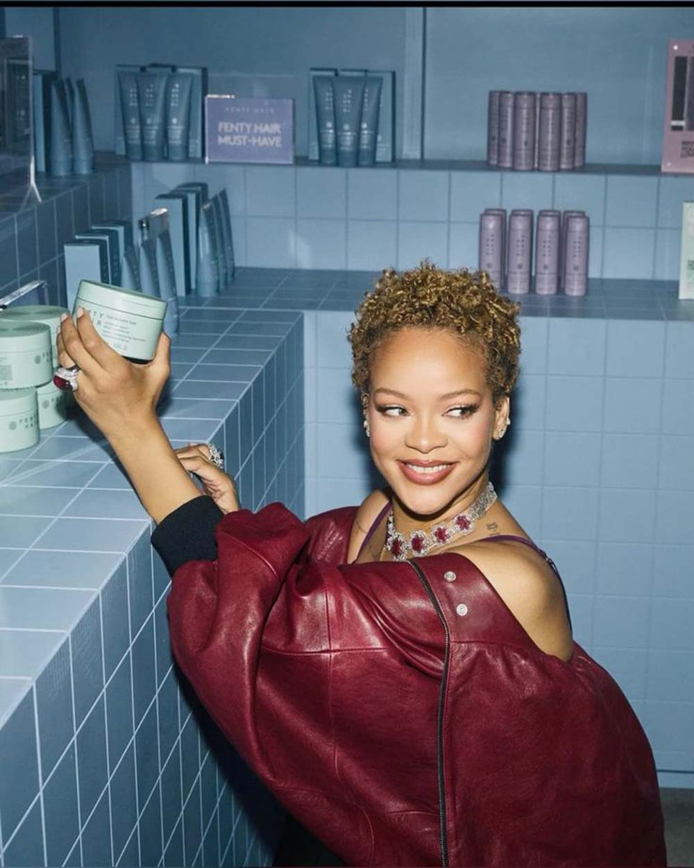 Rihanna celebrating her gorgeous natural length and texture at the Fenty Hair launch