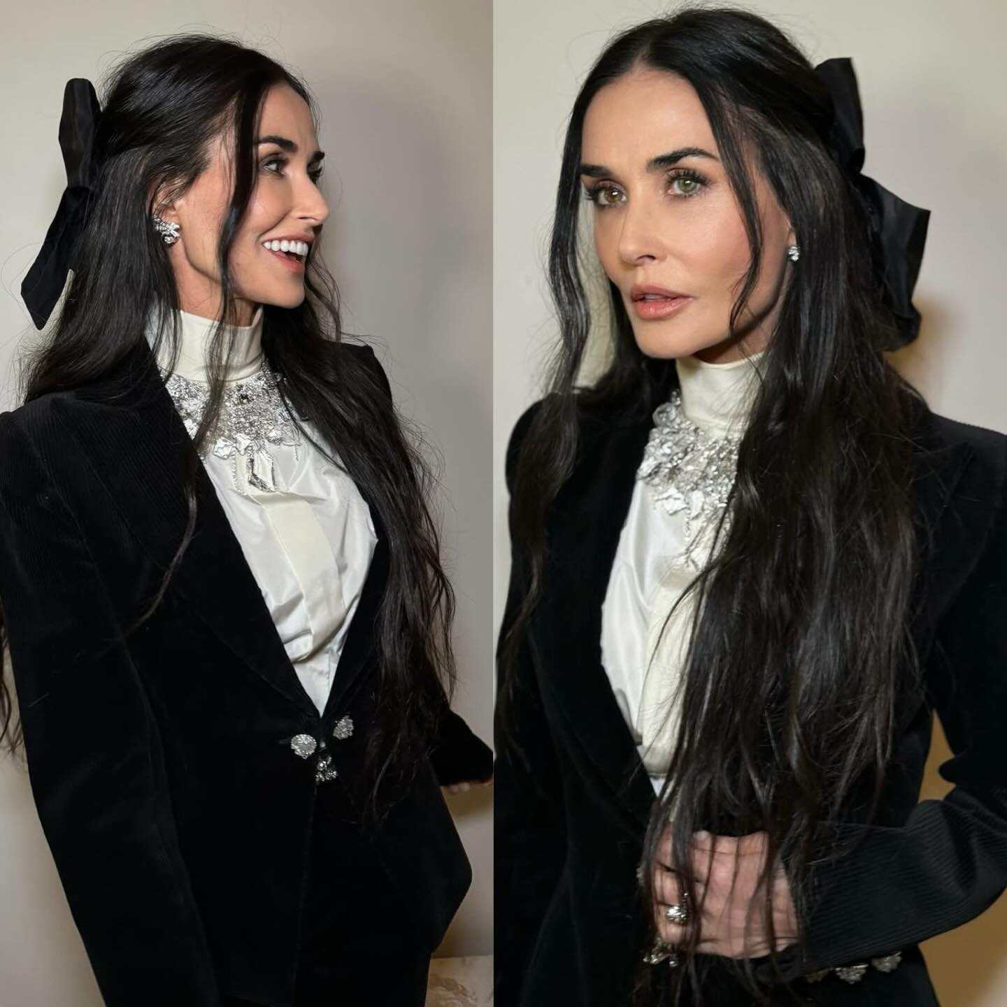 Demi doesn't often wear hair accessories, but chose a Chanel hair bow to pin back her long locks for the 2025 Palm Springs International Film Awards.