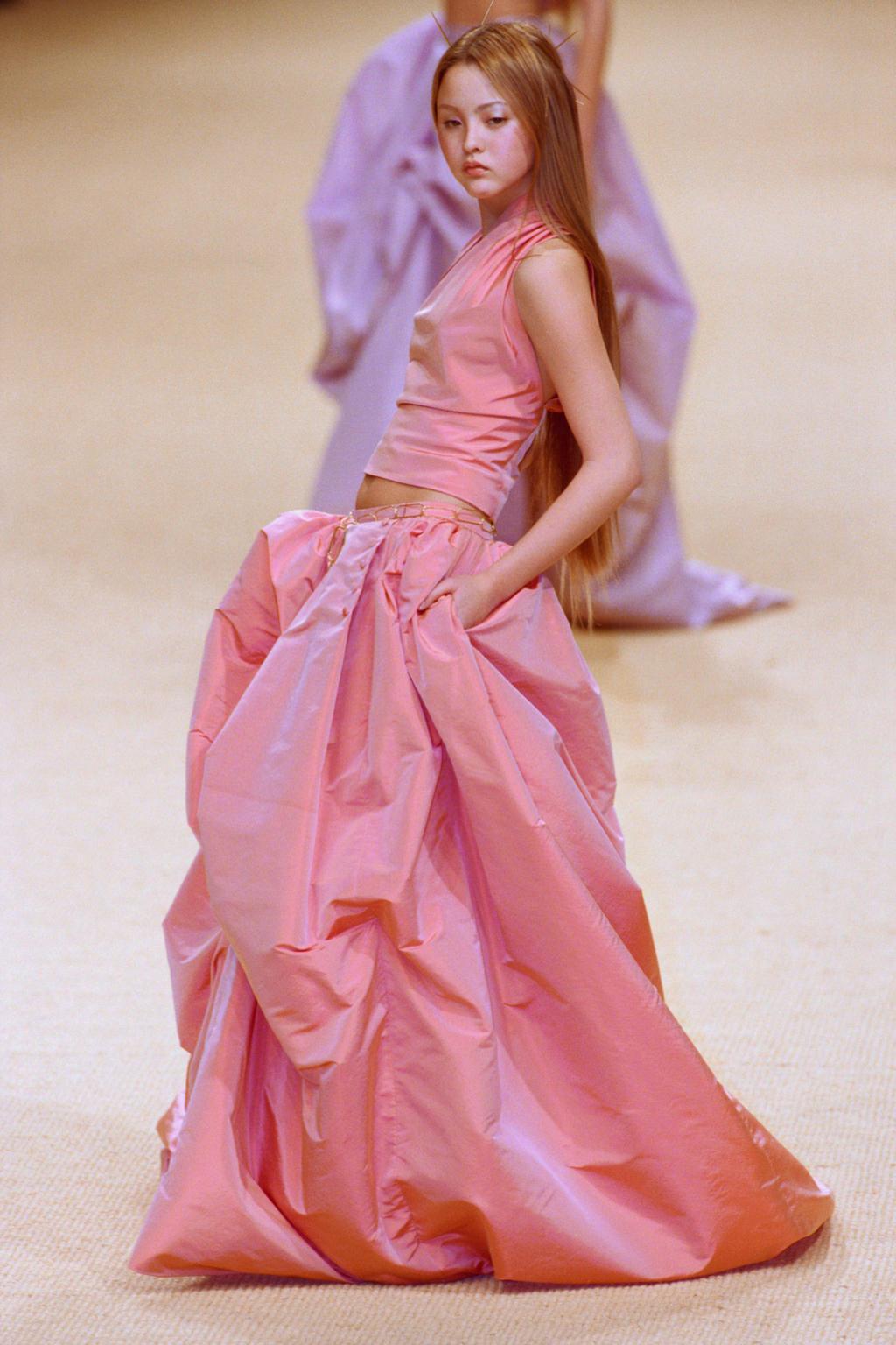 The bride wore a pink mohawk. Devon Aoki closes the Autumn Winter 1999 Chanel Haute Couture runway show.