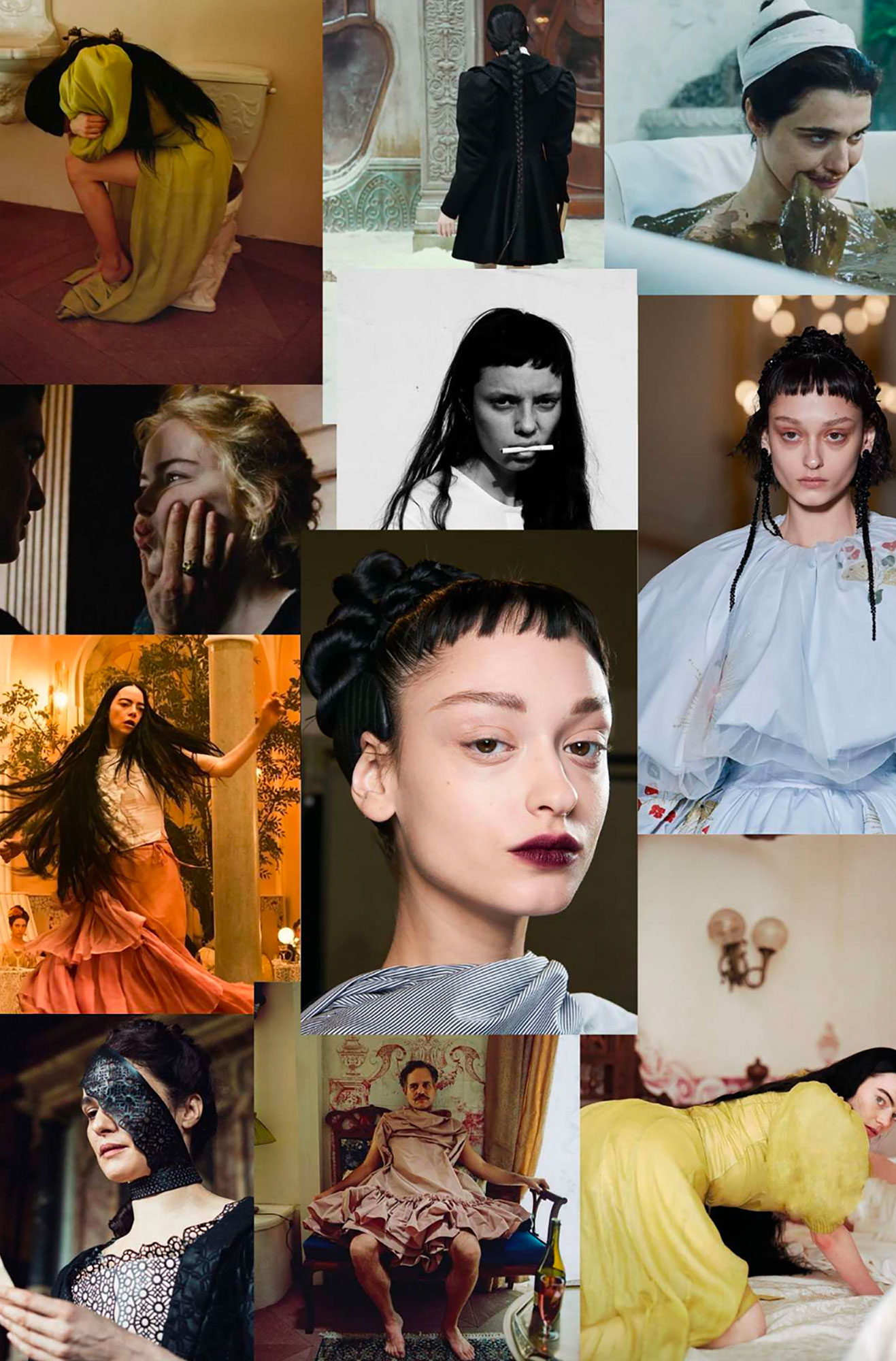 Severe, architectural shapes and jagged micro fringes, Yorgos Lanthimos desires anything with a touch of the uncanny, especially when it comes to beauty.