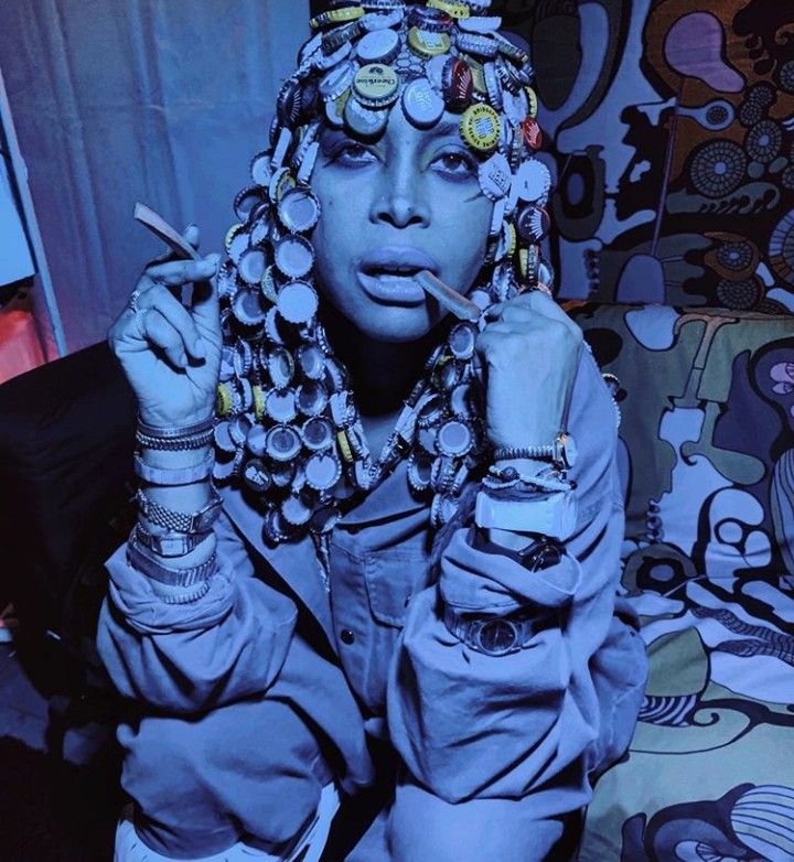 This custom wig made from bottle caps is the embodiment of Erykah's creativity with wigs and DIY art. Created by artist Chioma Obiegbu, it was first showcased for InStyle magazine and later embraced by the musician for her own creative purposes.