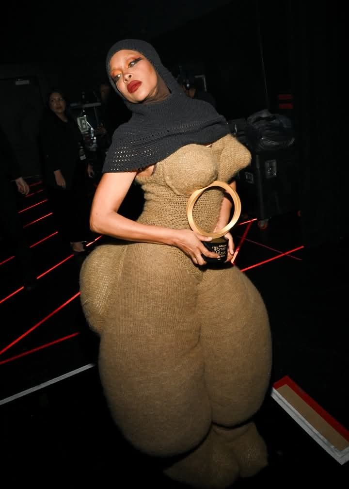 Award outfits never stray from anything other than iconic. To accept her Fashion Icon Award at the Billboard Women in Music Awards, she wore a nude toned, mohair knit suit made in collaboration with designer and Central Saint Martins grad Myah Hasbany - dubbed the "booty suit" or "full figure form".