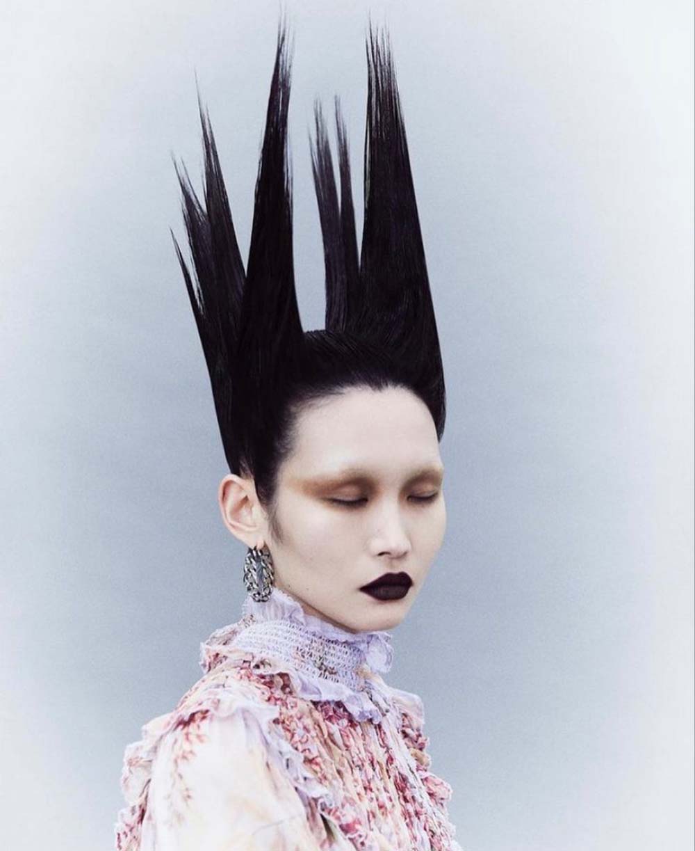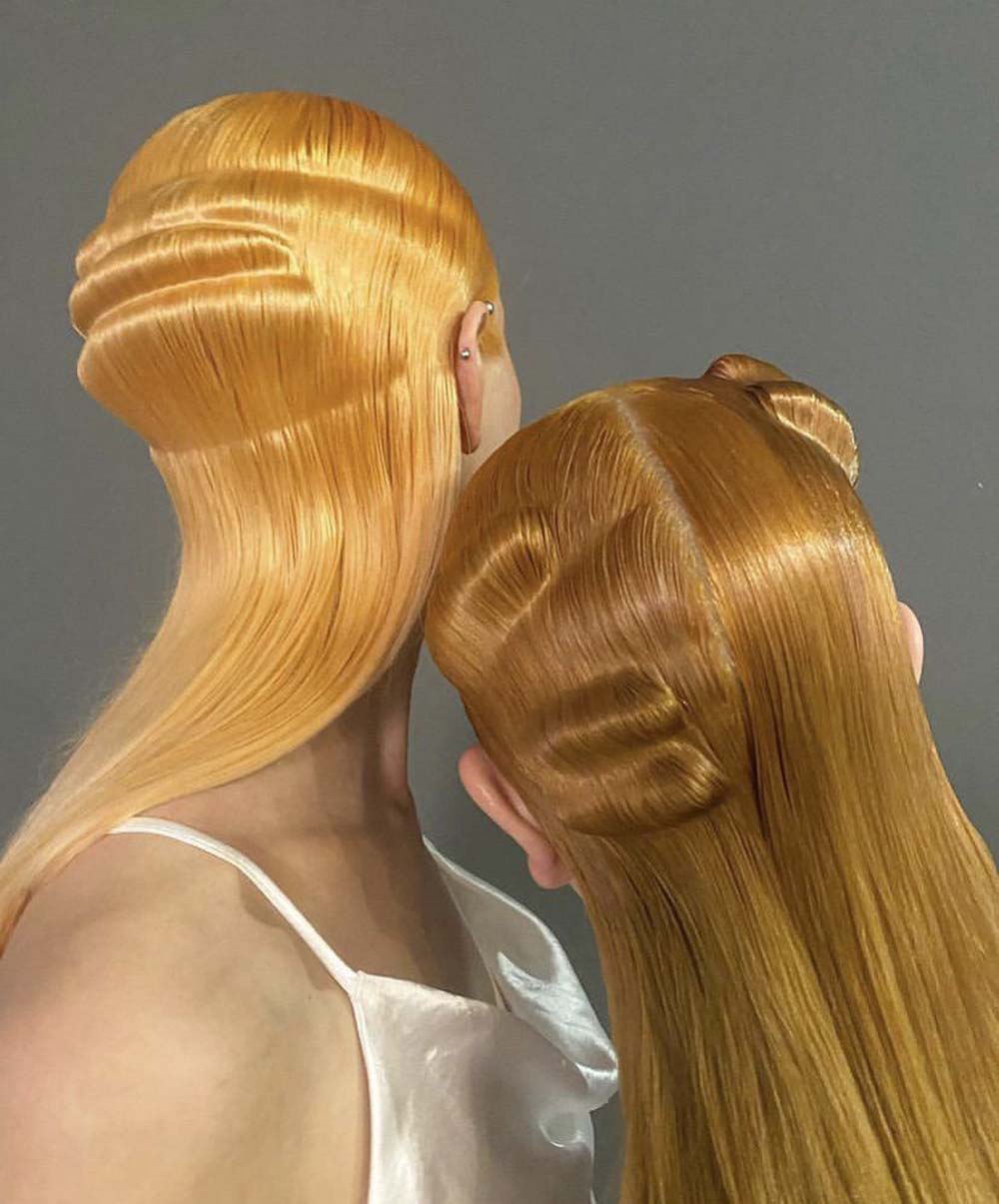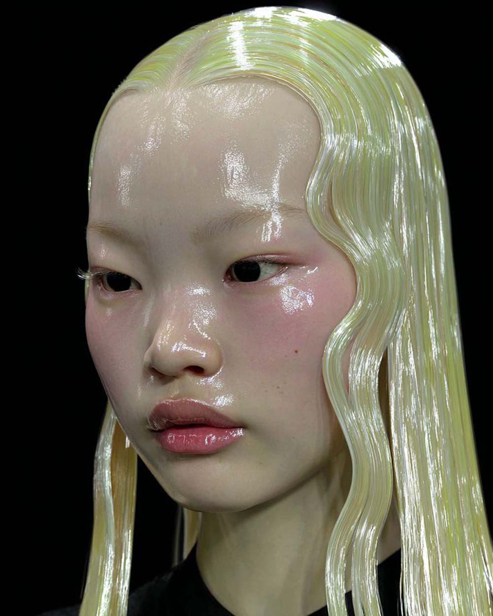 The 90's crimped trend looks a little different here. A little weird, sleek yet bizarre. Finger waves with an alien exaggeration.