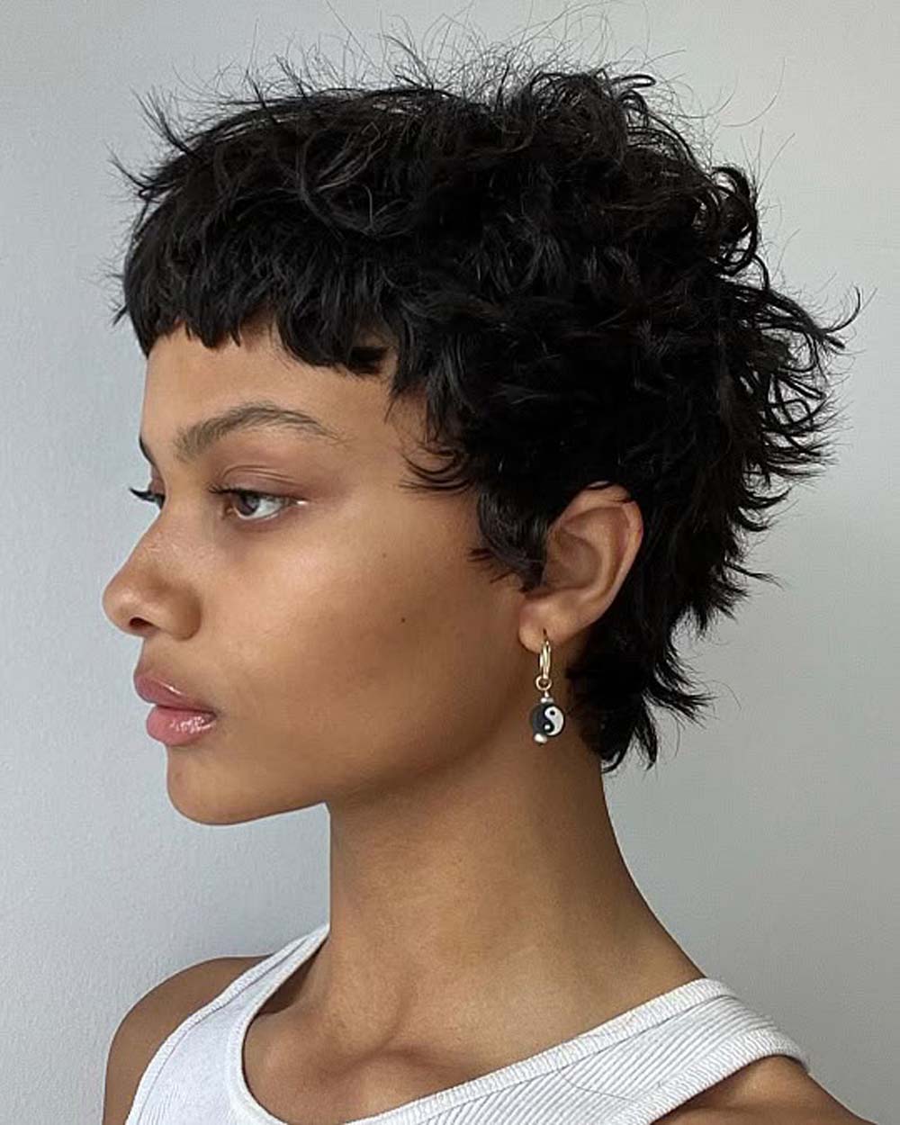 Betty Boop was onto something, the Curly Pixie makes for an iconic statement in both the cartoon world and in real life. Patterns of high-definition curls swirled onto a cropped, ear-hugging length make for a style that's not only volume-inducing but undeniably eye-catching.