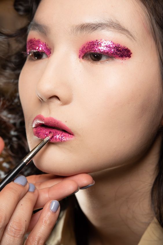 1930s Hollywood glamour in the form of matchy-matchy glittered eyes and lips.