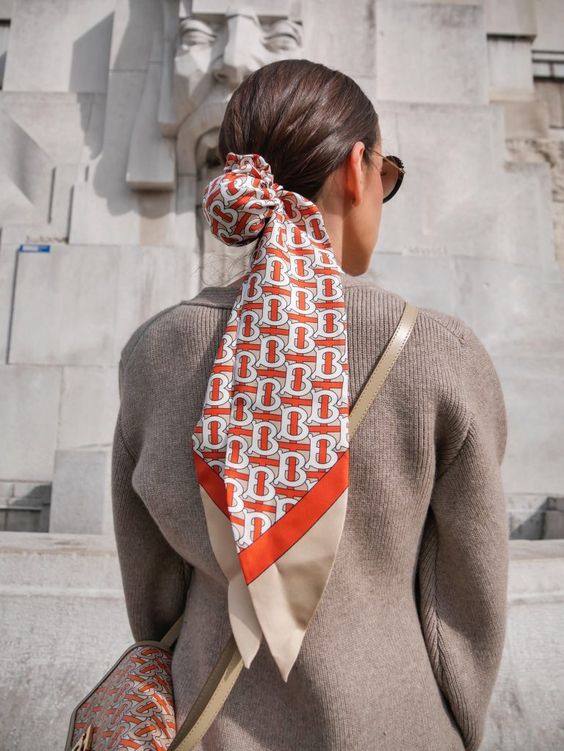 Casual bun, elevated headscarf. It's giving quiet luxury.