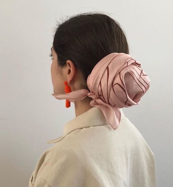 Turn a 'wash day' bun into a chic look with a silky headscarf.