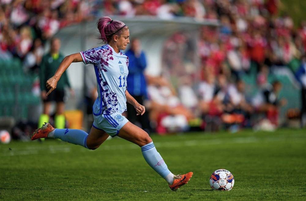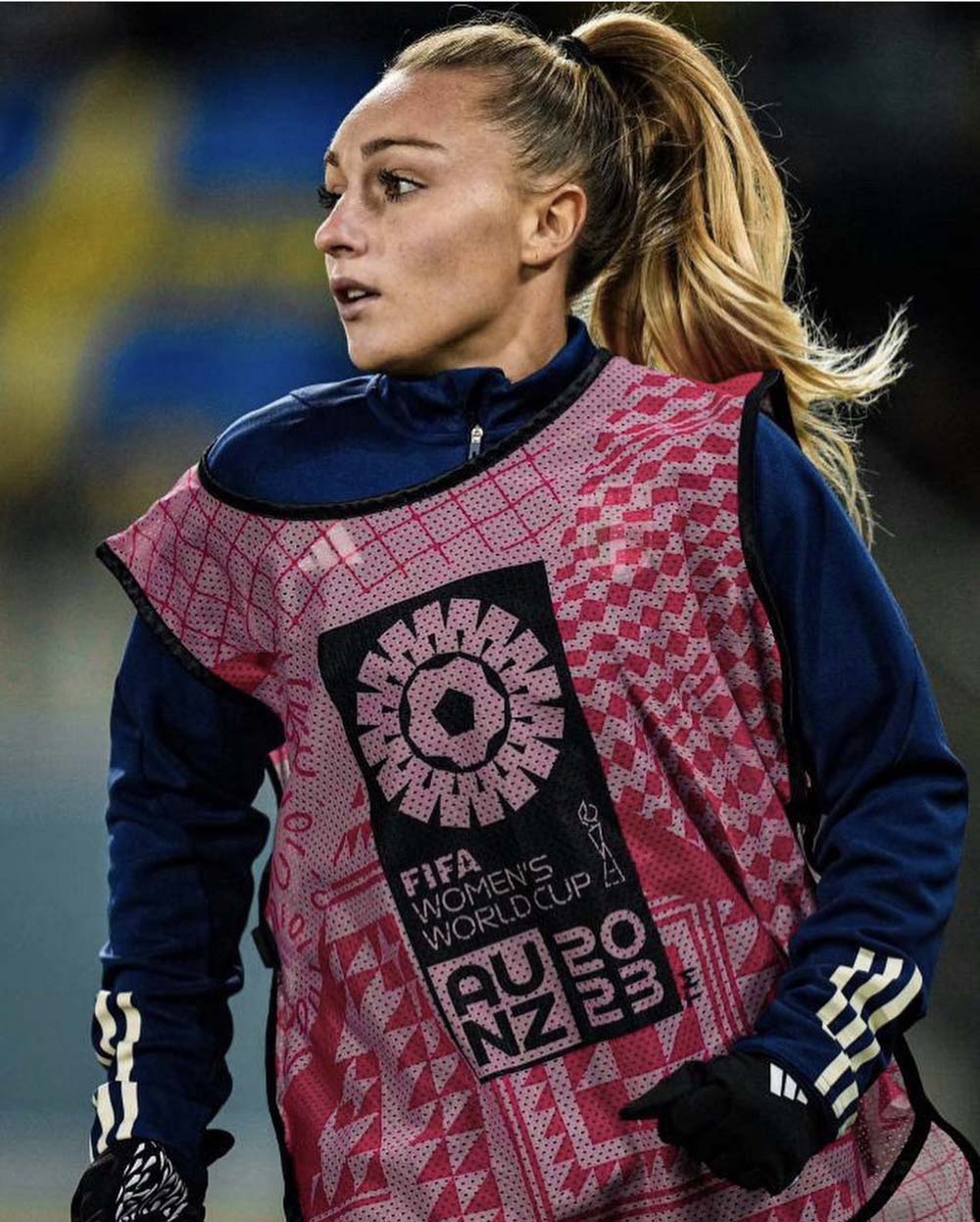 The Spanish ‘away’ kit for the 2023 games referenced the coral reefs of Southern Europe and the Australasian region, aiming to turn attention to the plight of ocean preservation globally. Alexia coordinated her fuschia pink hair colour with the uniform's ocean-life print, further highlighting this environmental statement. It doesn’t hurt that it also looks shockingly good.