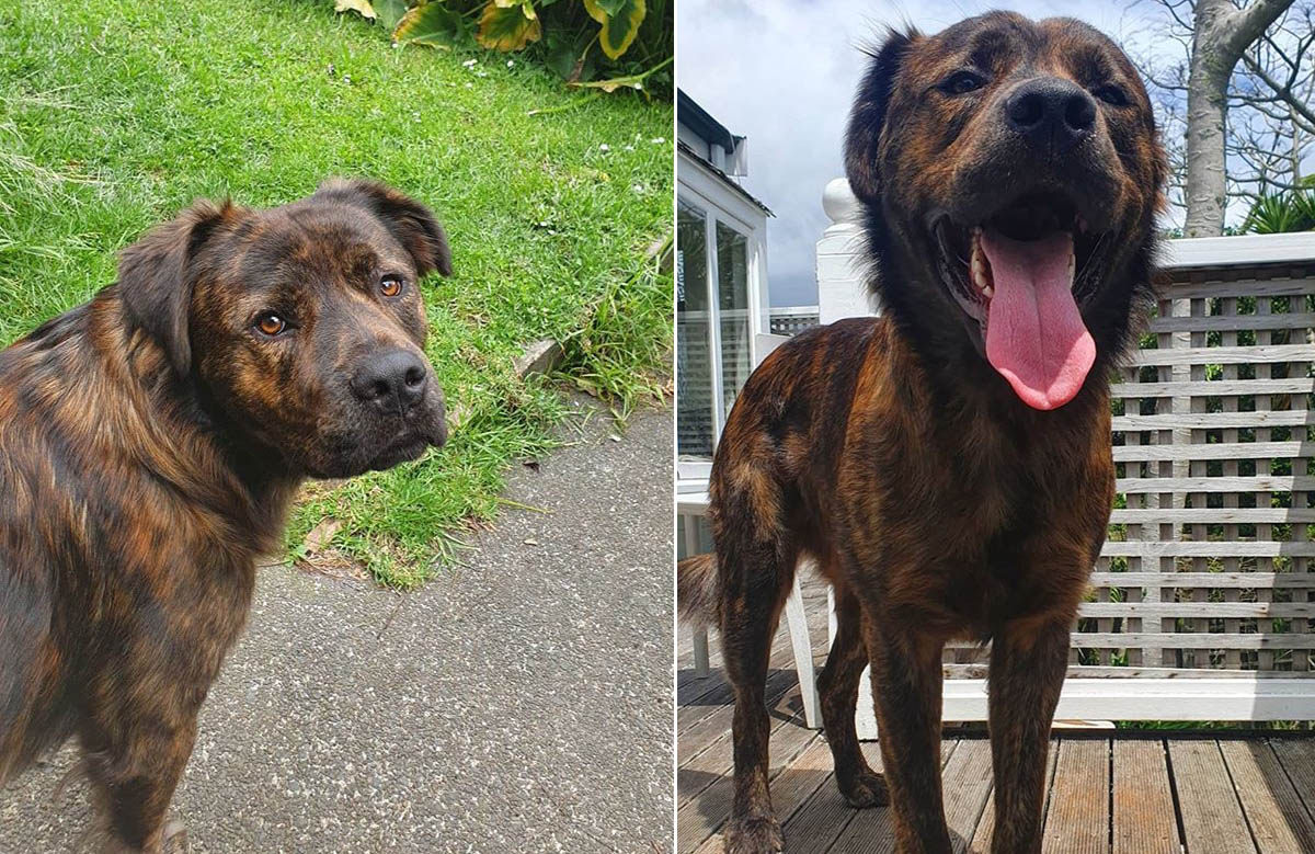 From the side of a road in South Auckland to every couch, bed and lap he can squeeze onto, Lennox has had quite the journey. I couldn't tell you which exact breeds make up Lenny, but I can tell you he’s 52kg of brindle-wrapped cuddles, supersized zoomies and enough fluff to rival your cosiest winter furs.