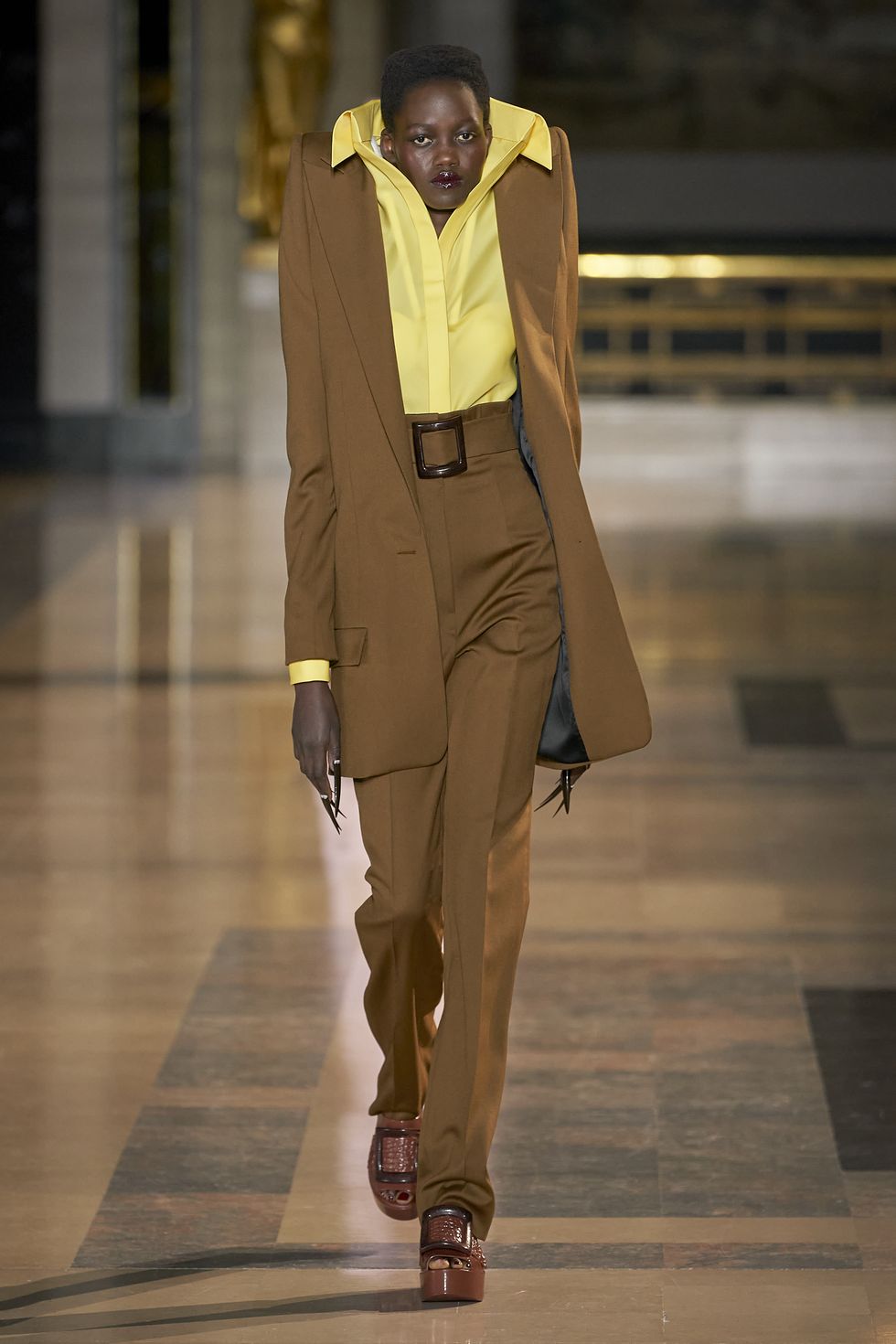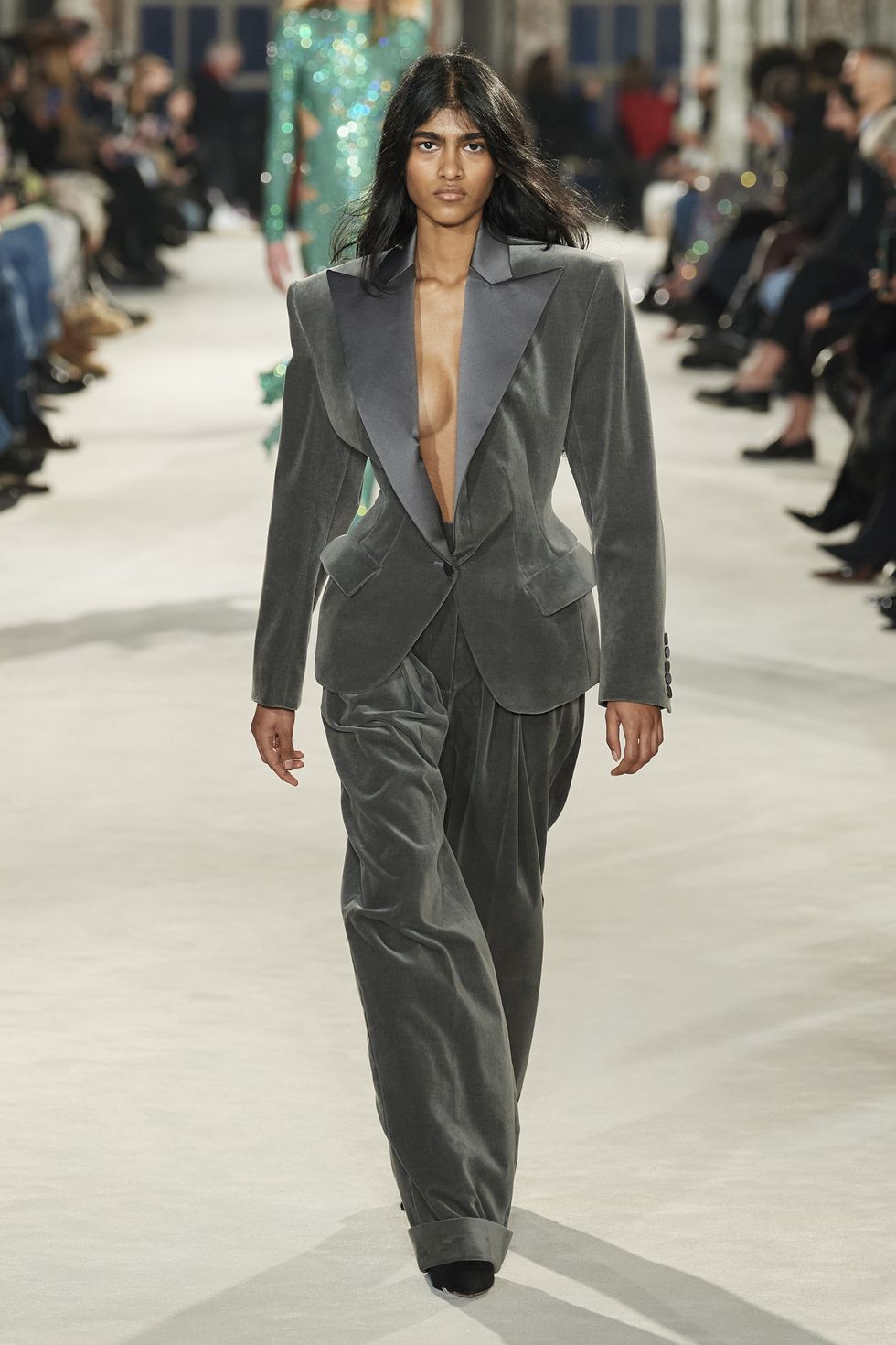 Intentionally undone hair was another highlight this season. We’re obsessed with how it tops off both a grey velour suit and a red python gown equally well.
