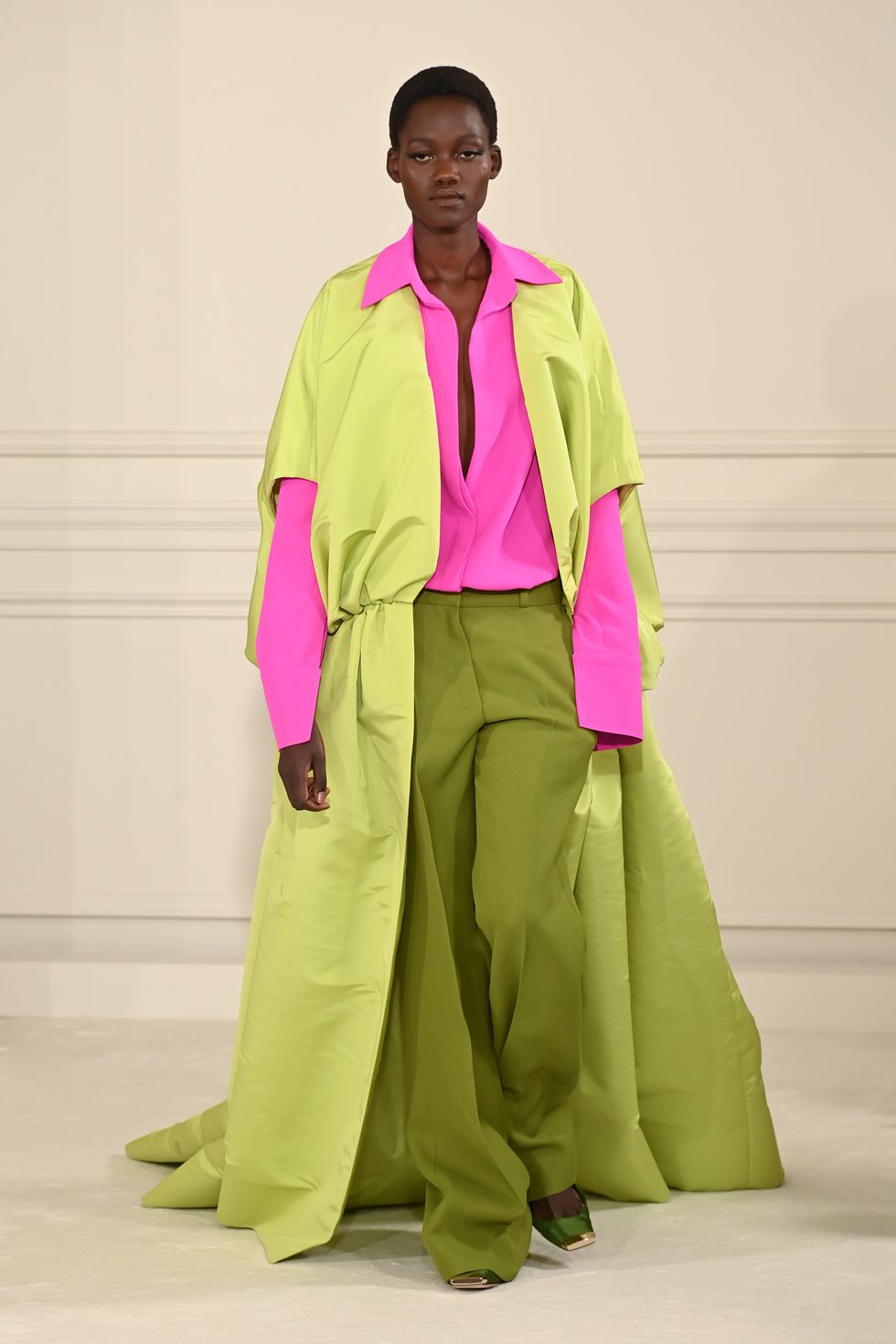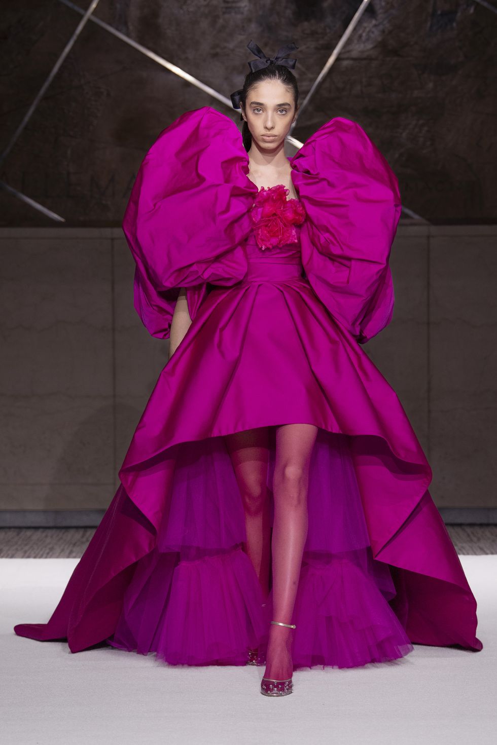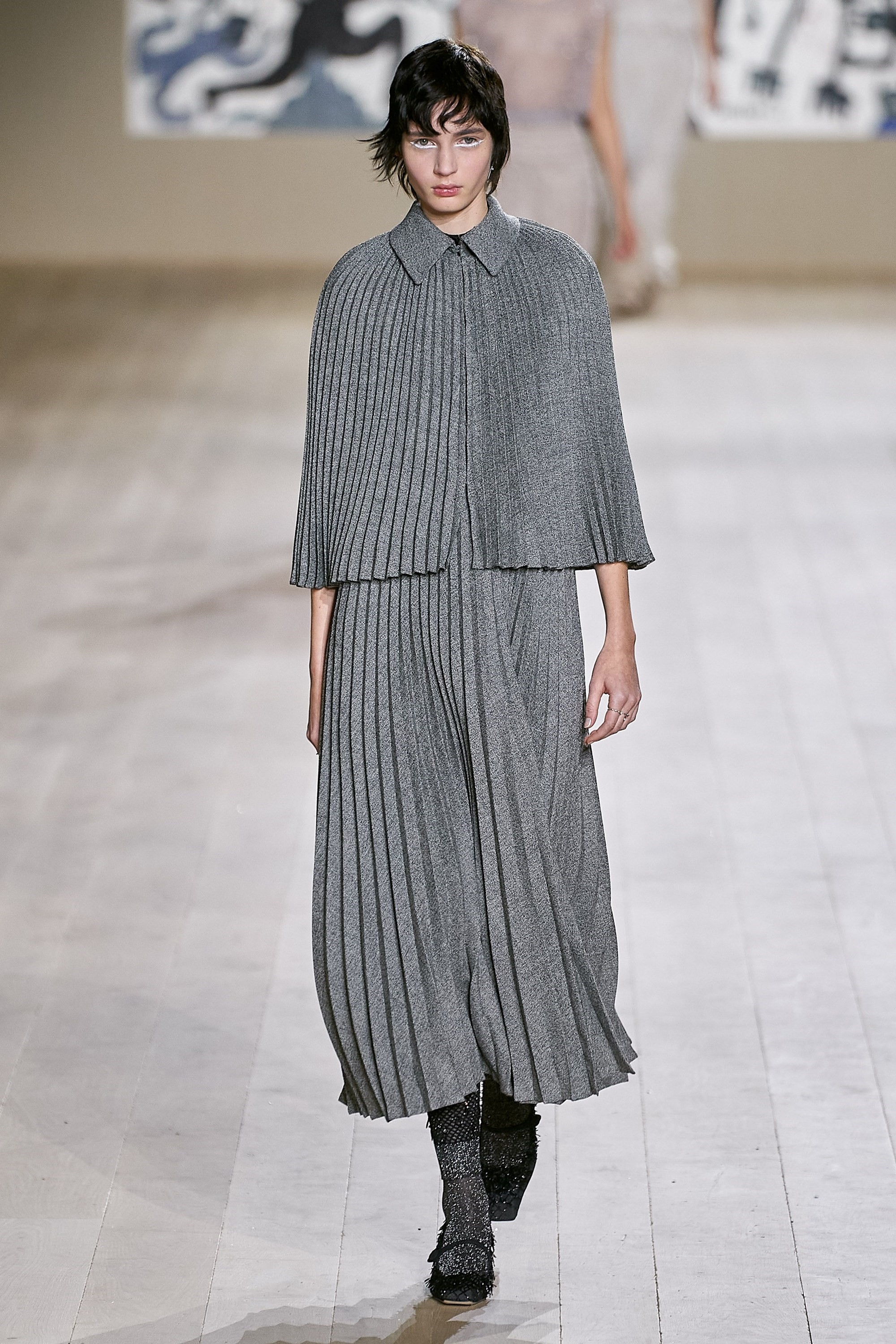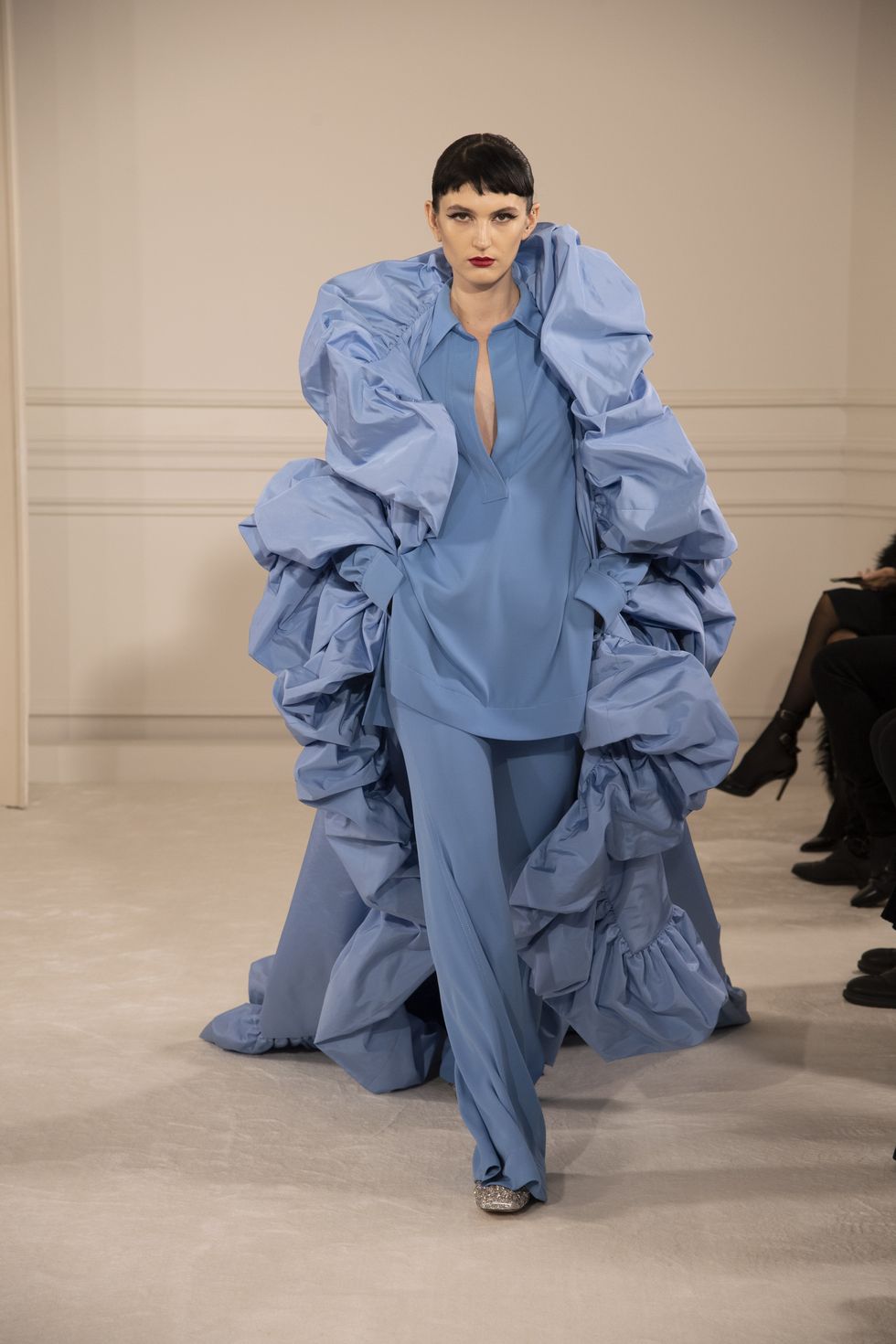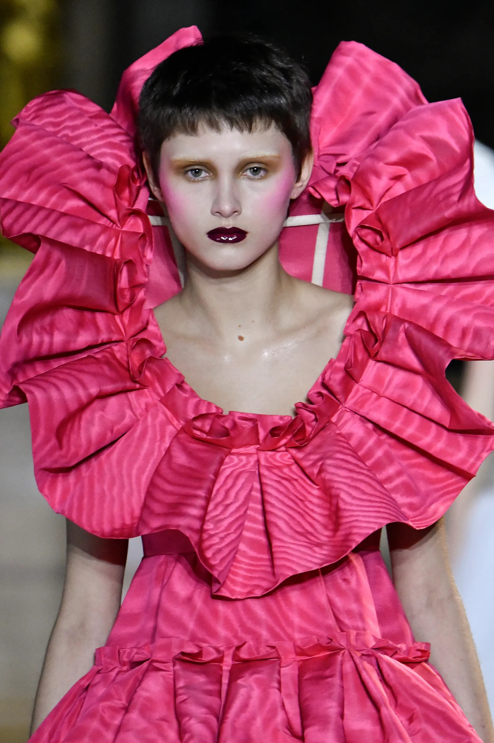 Tight, cropped pixie cuts stood out at Valentino and worked perfectly with the ultrafemme ensembles. Audrey Hepburn vibes all over.