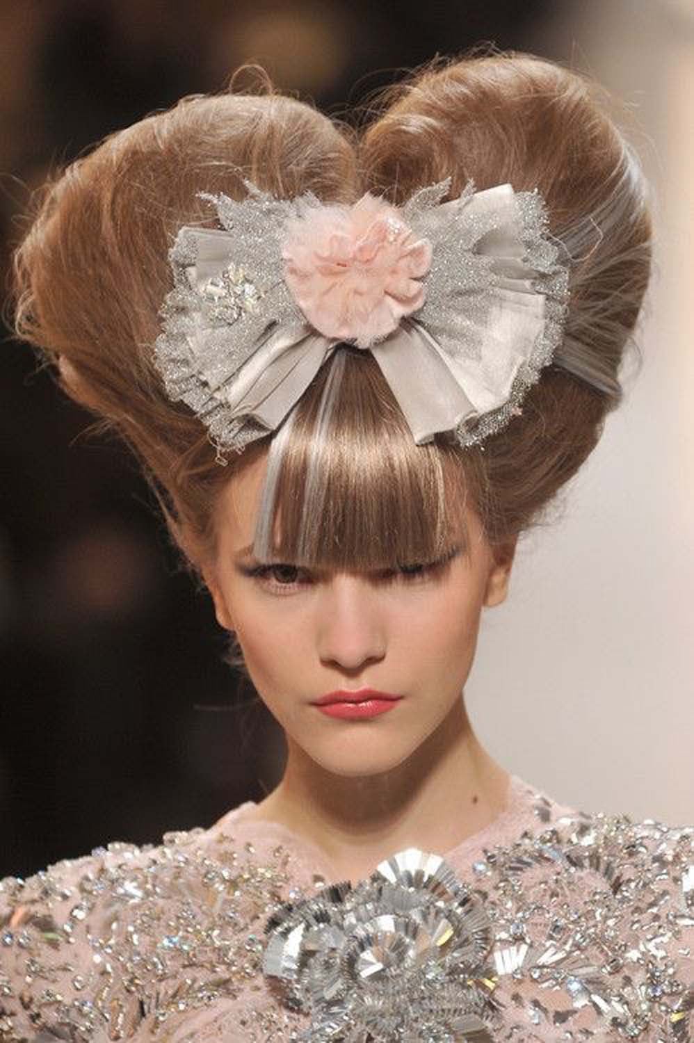 Charmed by this coquette Chanel SS 2010 hair by Sam McKnight, complete with blunt cut bangs and textured bow.
