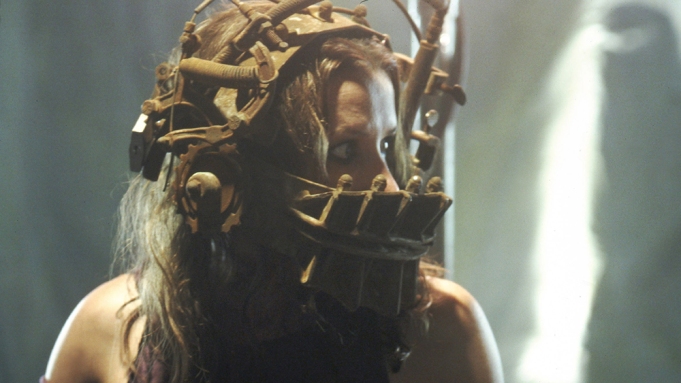 Amanda Young wakes up in this reverse bear trap in Saw.