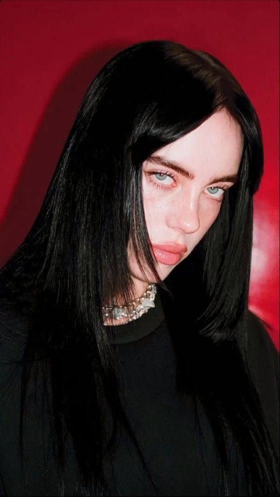 Often characterised by her bold hair choices, such as her signature neon green roots, Billie Eilish as of late, has taken a simpler route. Still stunting her lavishly oversized ensembles but pairing them with more understated hairstyles. Classy, ultra-glossy and glassy, her strands allude to their lavish, expensive finish. Sporting a hue that's as dark and moody as her break-up ballads, a rich blue-black that allows her piercing blue eyes to solidify their soul-staring ability.