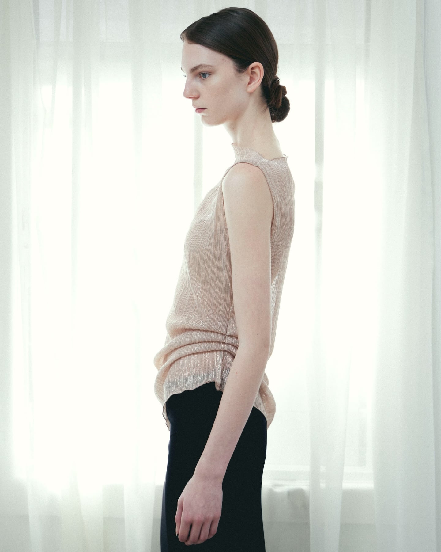 This simple twisted knot bun is all about understated style that feels polished without trying too hard - much like the clothes in Ross' collection, called Fenella.