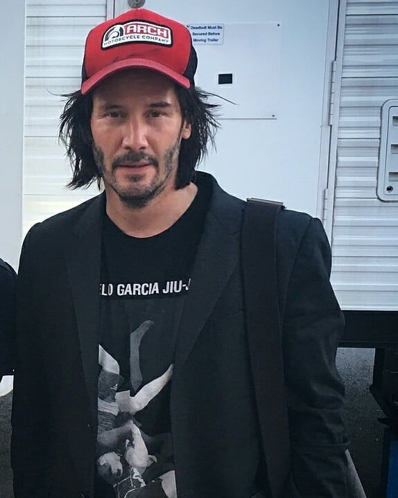 In it to win it, Keanu Reeves at the Longbeach Grand Prix rocking a very textured 'bed hair' look.