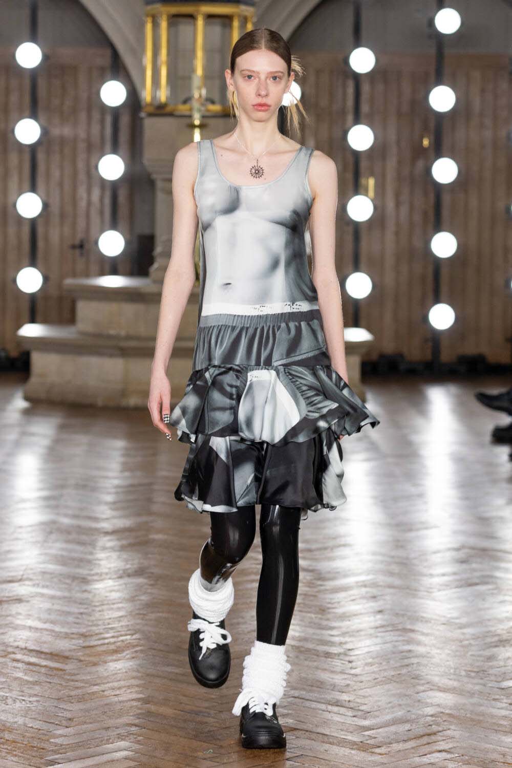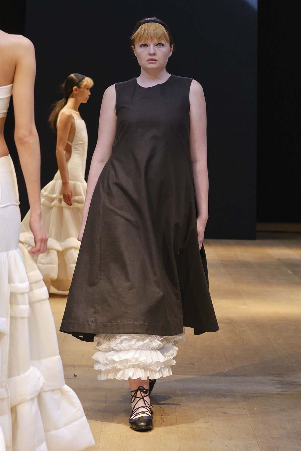 Molly Goddard’s research took her to the UK’s National Theatre Costume Hire, it was here she found inspiration for her Spring/Summer 2024 collection. Goddard extrapolated ideas from the inner workings of historical garments and utilised them in a collection that was turned “inside out”.
