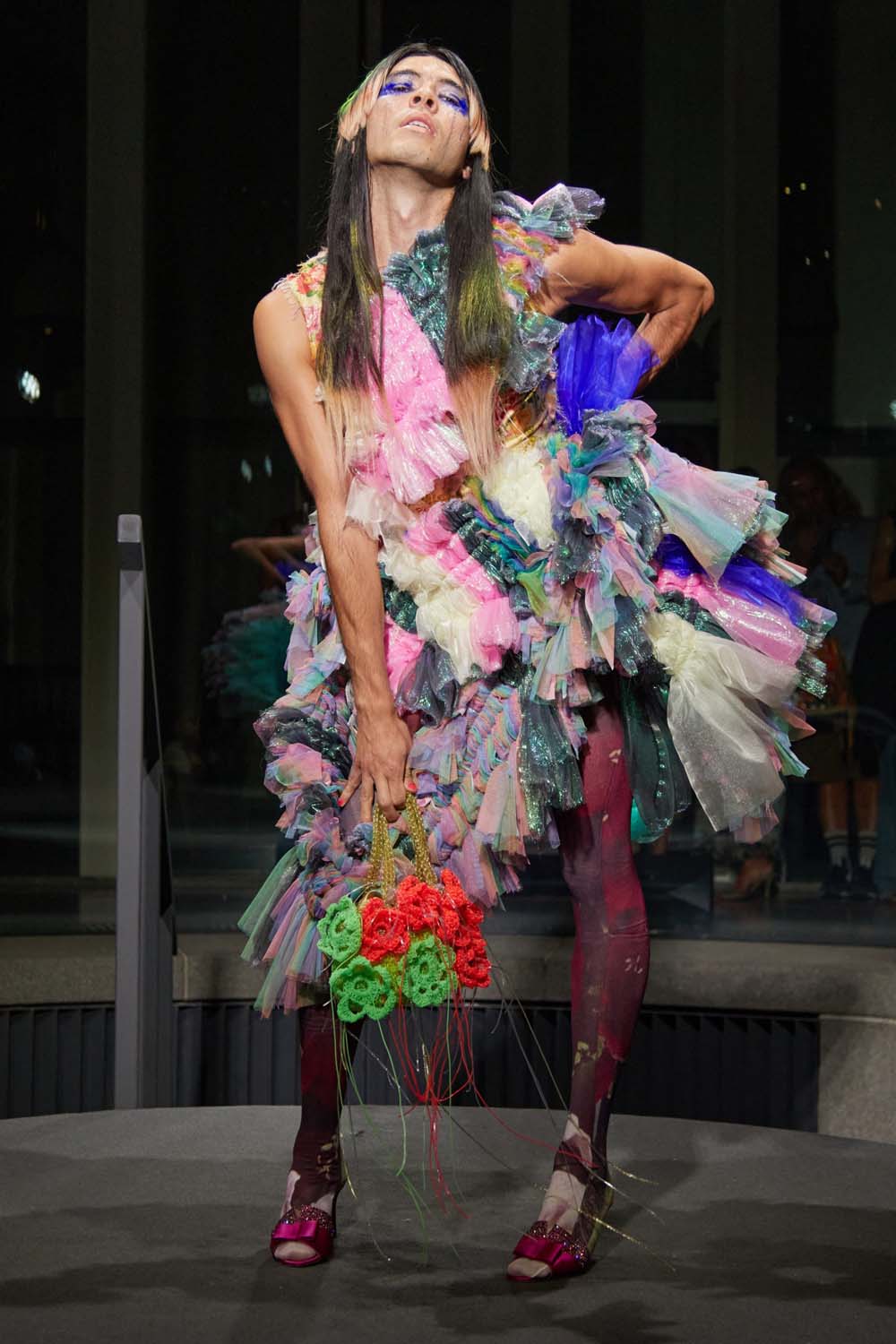 It was an 80’s explosion at Matty Bovan Spring/Summer 2024, with the designer's use of over-the-top tulle, wide shoulders and glitter galore! The garments, which resembled deconstructed 80’s American Prom dresses, were overloaded with fabrics in clashing colours and textures, we seriously couldn’t get enough.