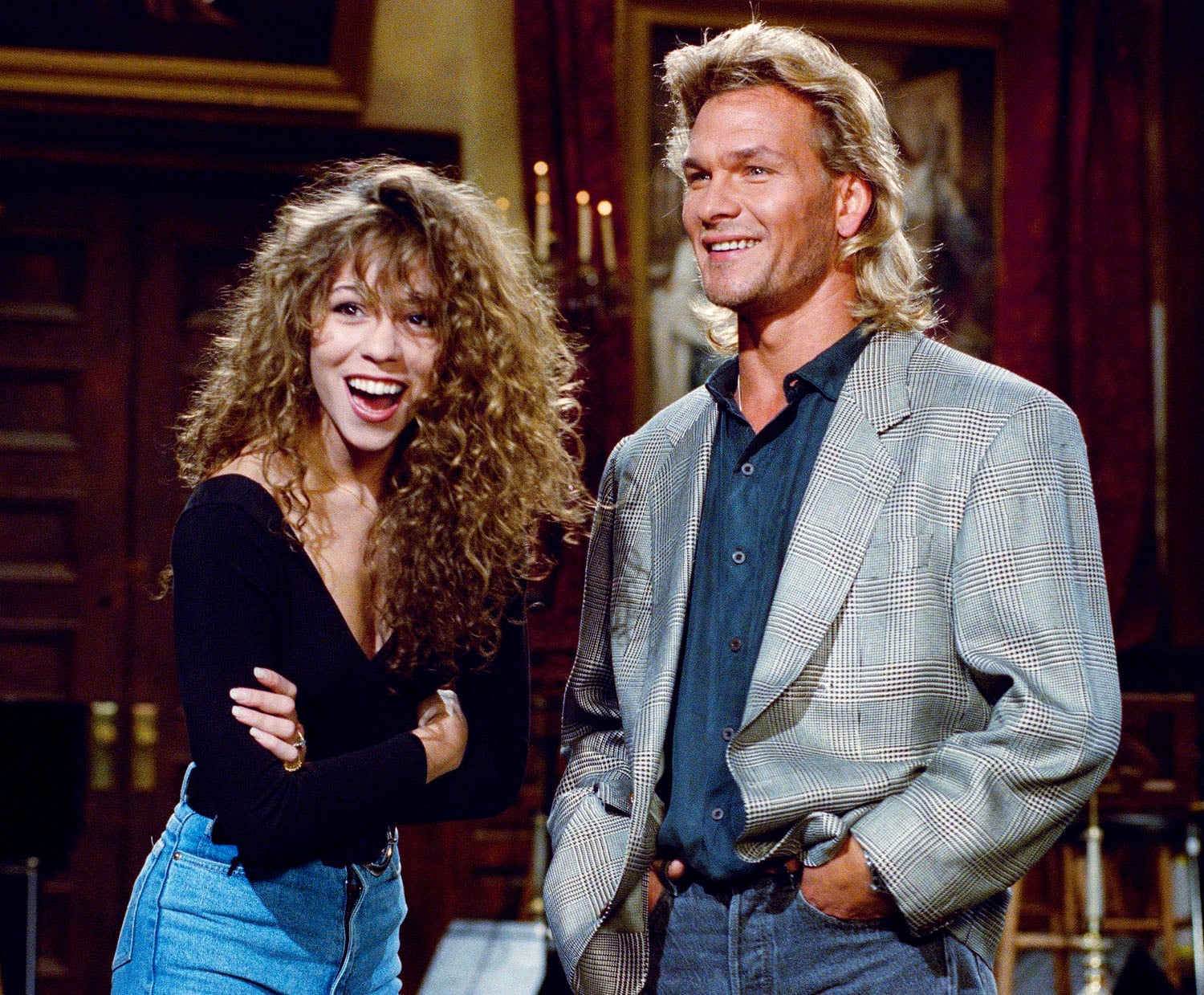 We’ve got to gush over the hair in this image. Mariah’s naturally curly and voluminous mane next to Patrick Swayze’s mullet? It’s an ‘80’s into the 90’s’ hair DREAM.