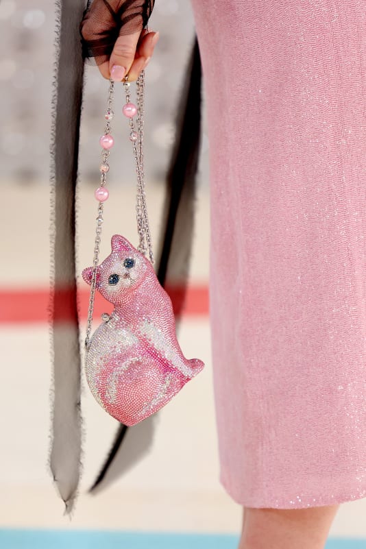 We zoomed in really close to catch Grace Elizabeth's intricate, wetlook finger waves with pearl detailing. We know Karl wasn't a fan of pink but we can't go passed a wet-look.