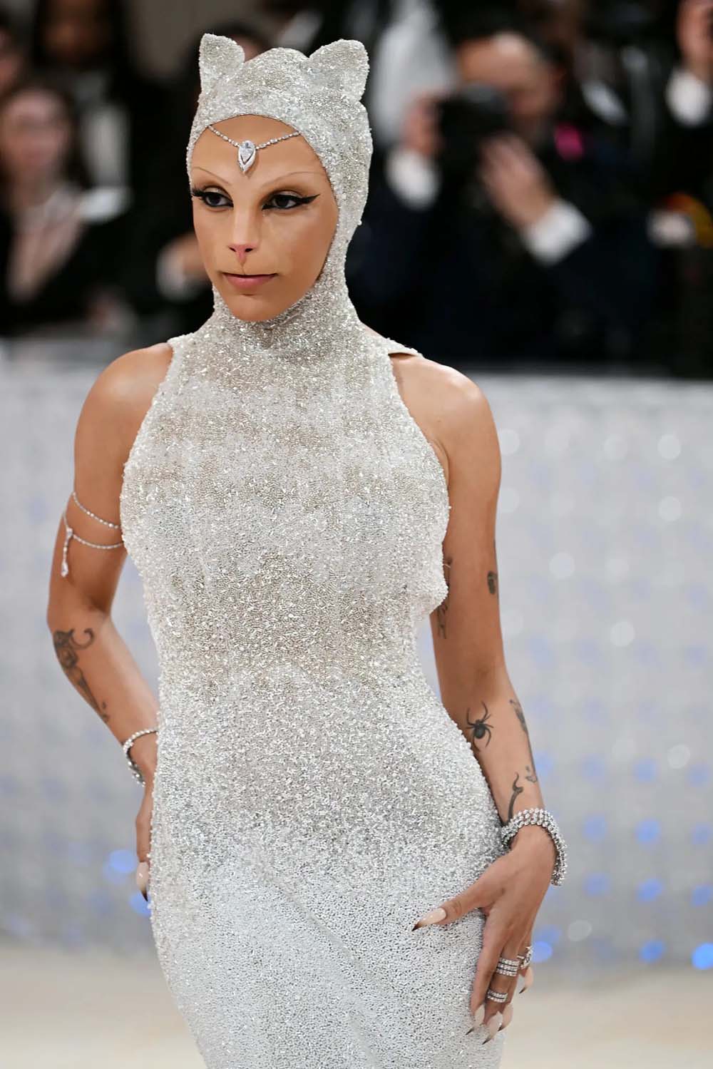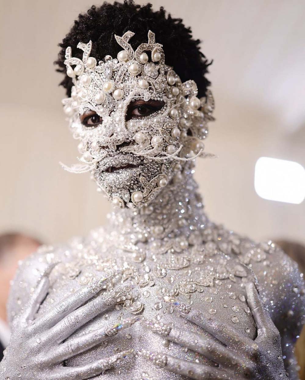 Lil Nas X opted for full glam, pearl and diamond kitty cat.