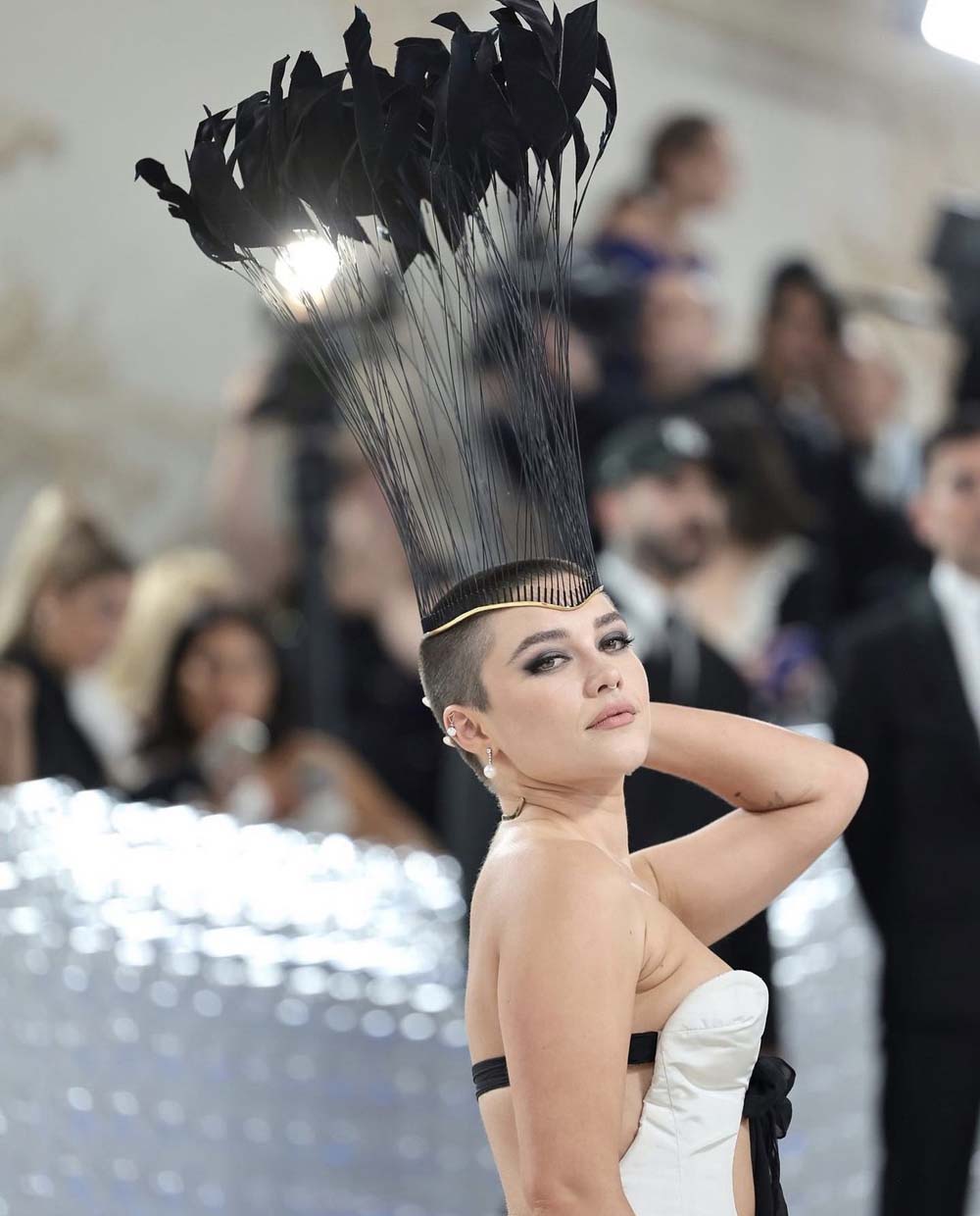 Florence Pugh in Valentino, I'm into a shaved-head couture look.