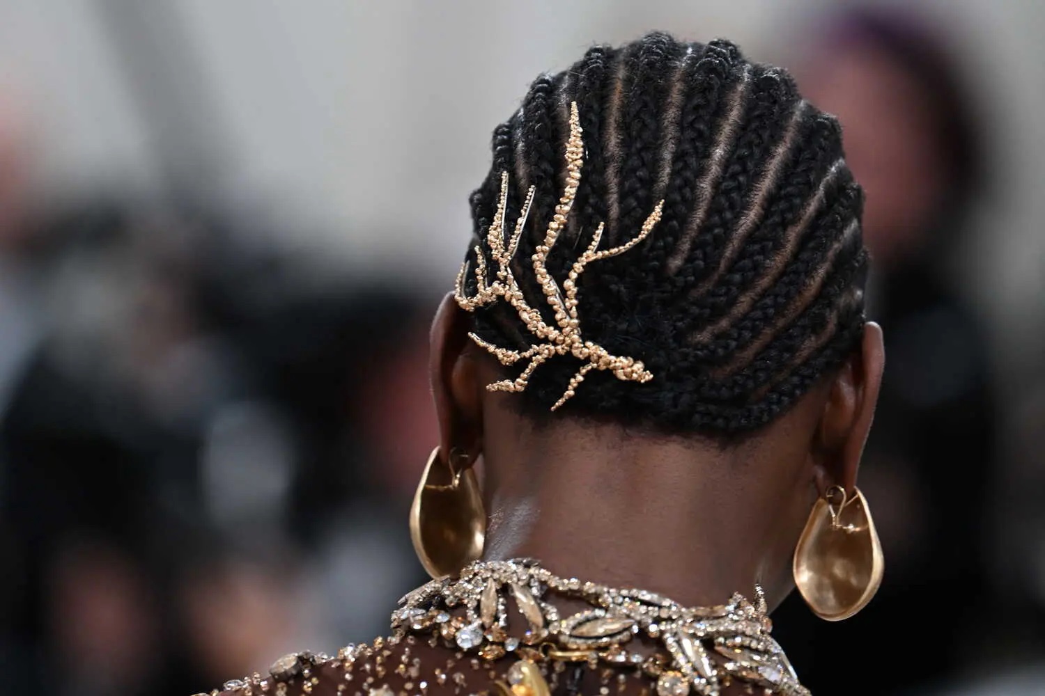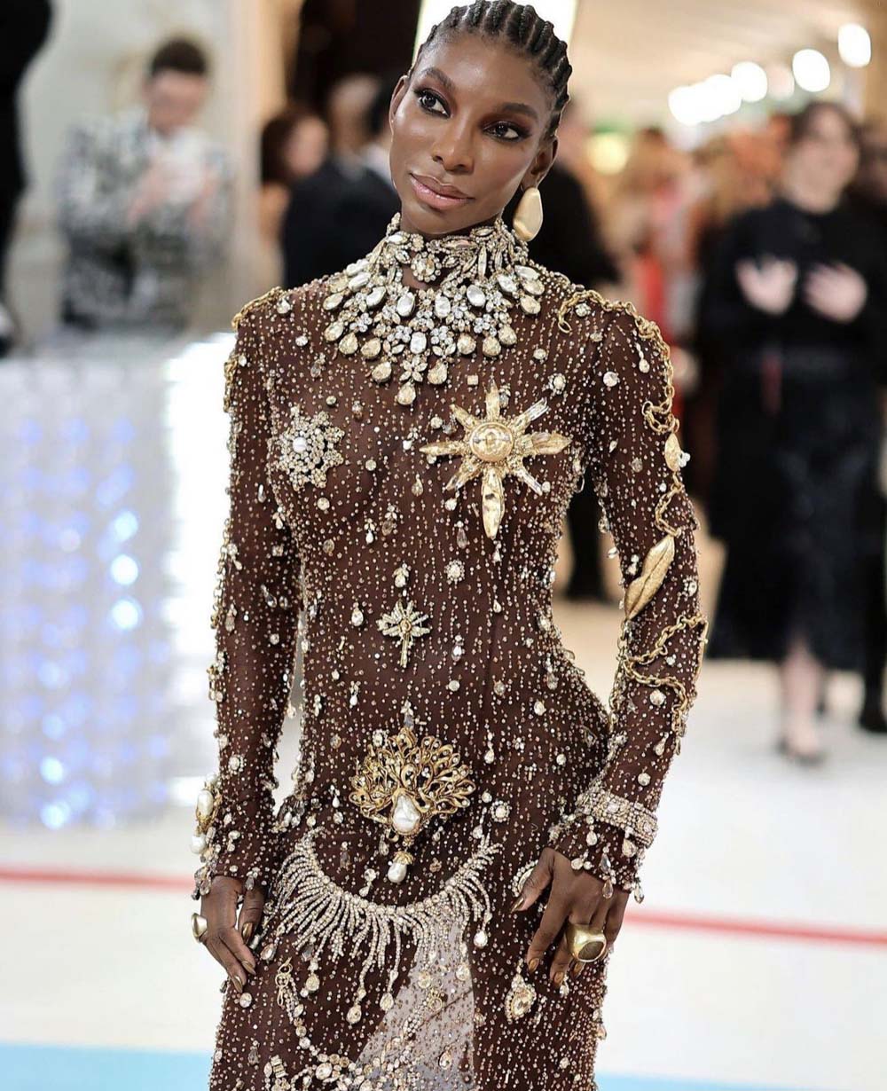 What a look, Micaela Coel with perfect braids and a heavily embellished Schiaparelli dress.