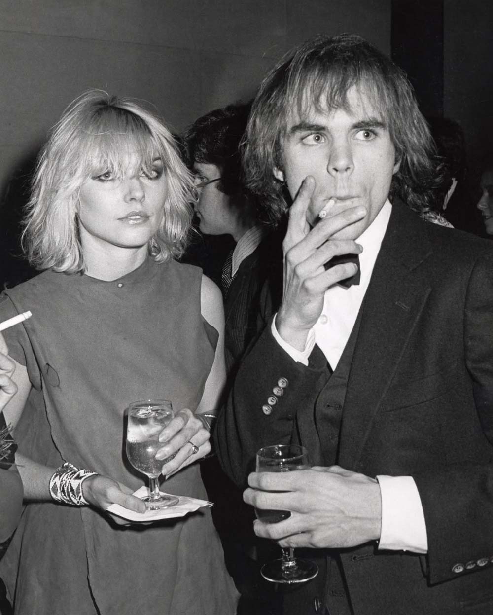 Debbie Harry looking every bit of the rockstar that she is in a tousled bob with bangs covering her kohl smudged eyes.
