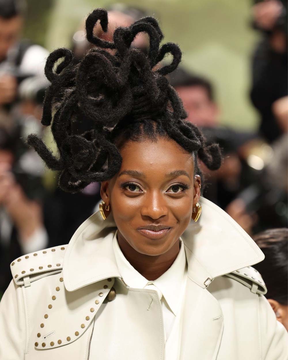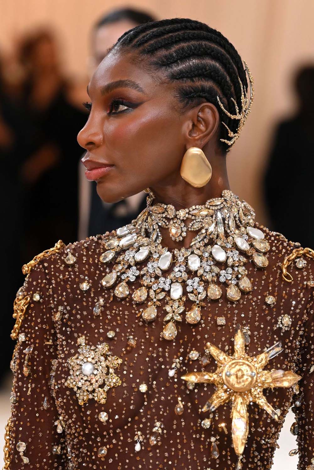 Michaela Cole wore a coral inspired gold accesory by Ghanian-British designer Emefa Cole.