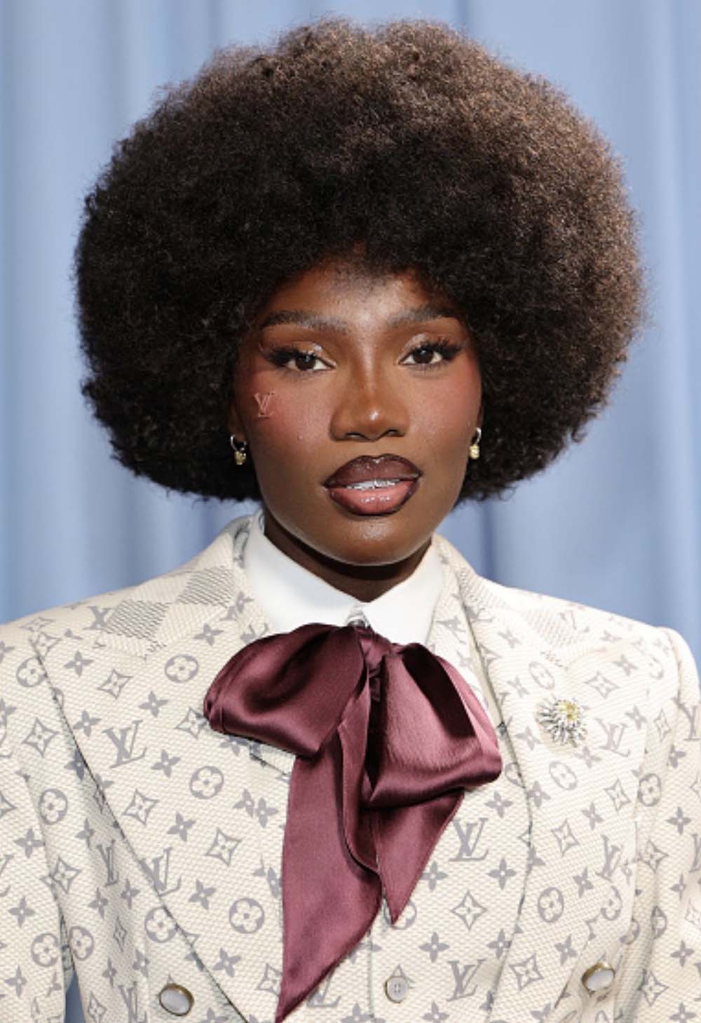 Doechii in a perfect fro to round up her tailored look.