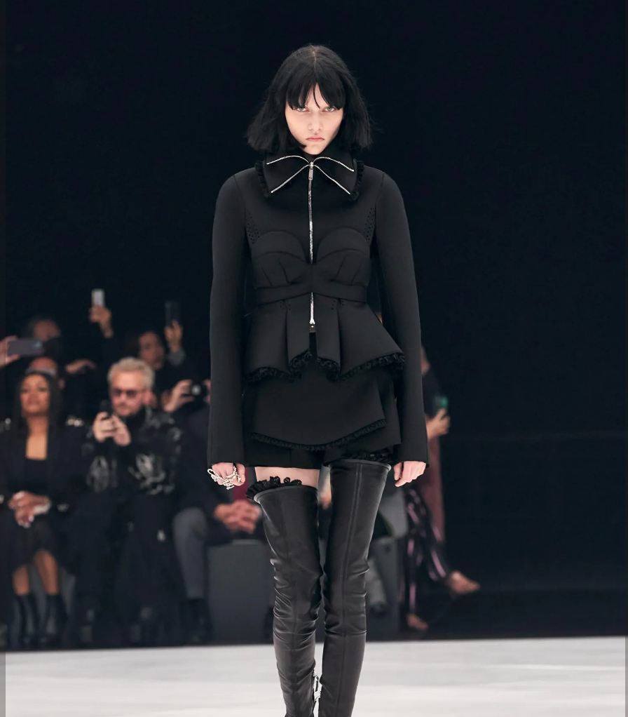 Unlike our previous period of maximalism in the 80’s which saw big hair, big makeup, and even bigger shoulder-pads all happily coexisting, the microbob brings an element of calm and restraint to today’s excess – a quiet moment of modernity to complement this post-modern mashup that has loudly and brashly announced itself.