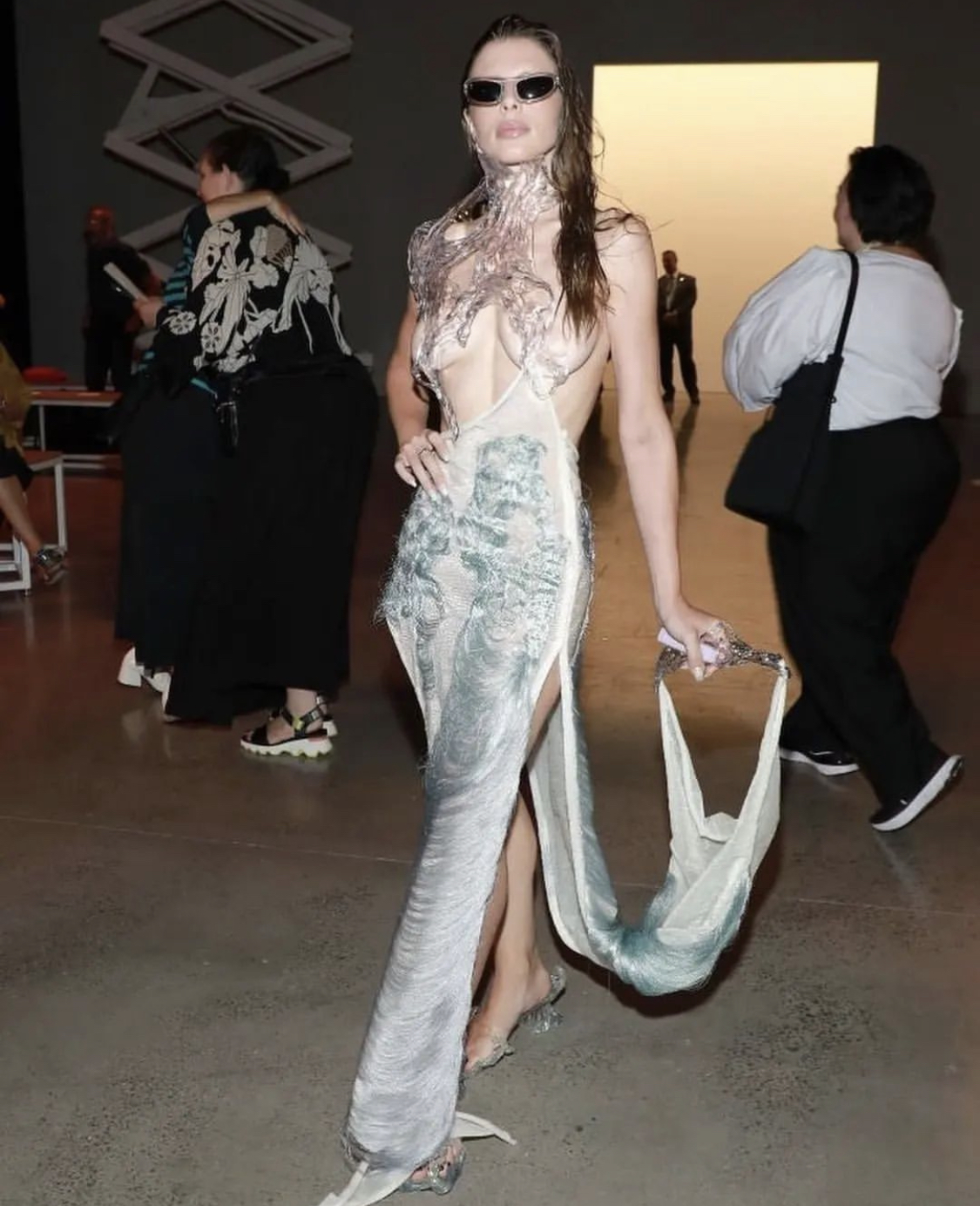 Fetish mermaid with the hottest accessories at the Parsons MFA student showcase, wearing WeiRan SS23 which was showcased. Yes!