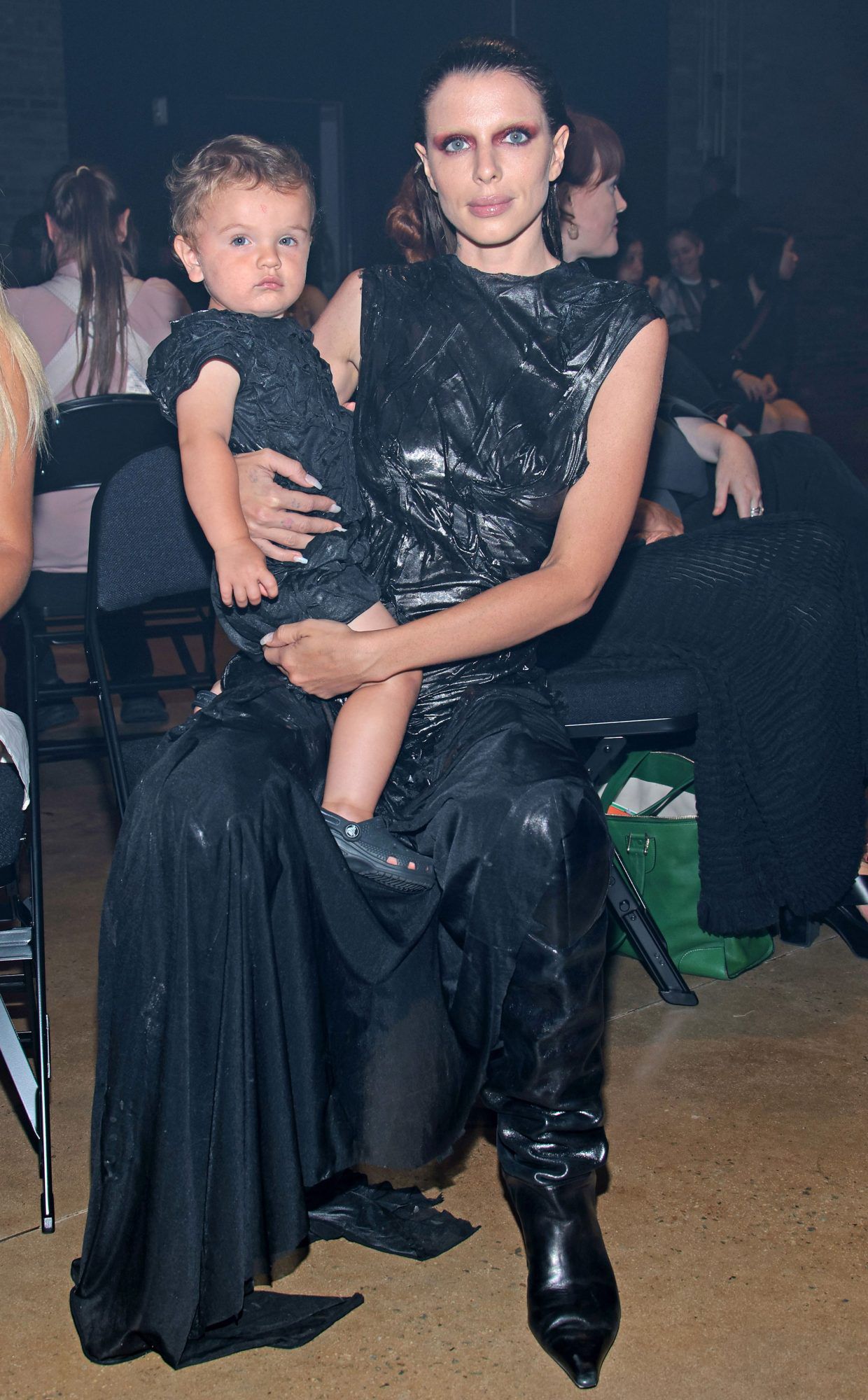 The atmosphere is foggy, lights are dimmed and with a dewy slick back look, Mother and baby, Valentino, are both front row wearing custom Elena Velez scrunchy, lacquered looks. “My woman is nuanced and highly aware; she takes responsibility for her own desires.” Julia Fox is a fitting muse for Elena Velez's SS23 show.