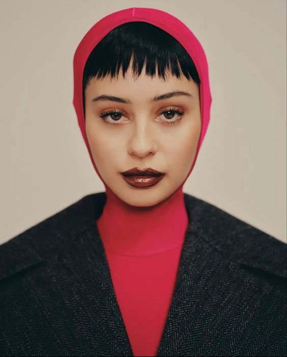 Bimini Bon Boulash rocking a bowl/mullet hybrid for British Vogue 2021.