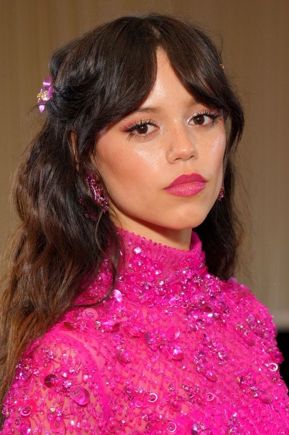 Wednesday Addams better known as Jenna Ortega wearing all pink at the Met Gala in 2022.