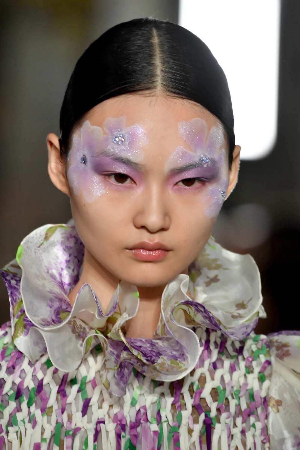 Hand-painted floral designs gracing a few models, teamed against the iconic feather lashes that turned into a social media filter sensation.