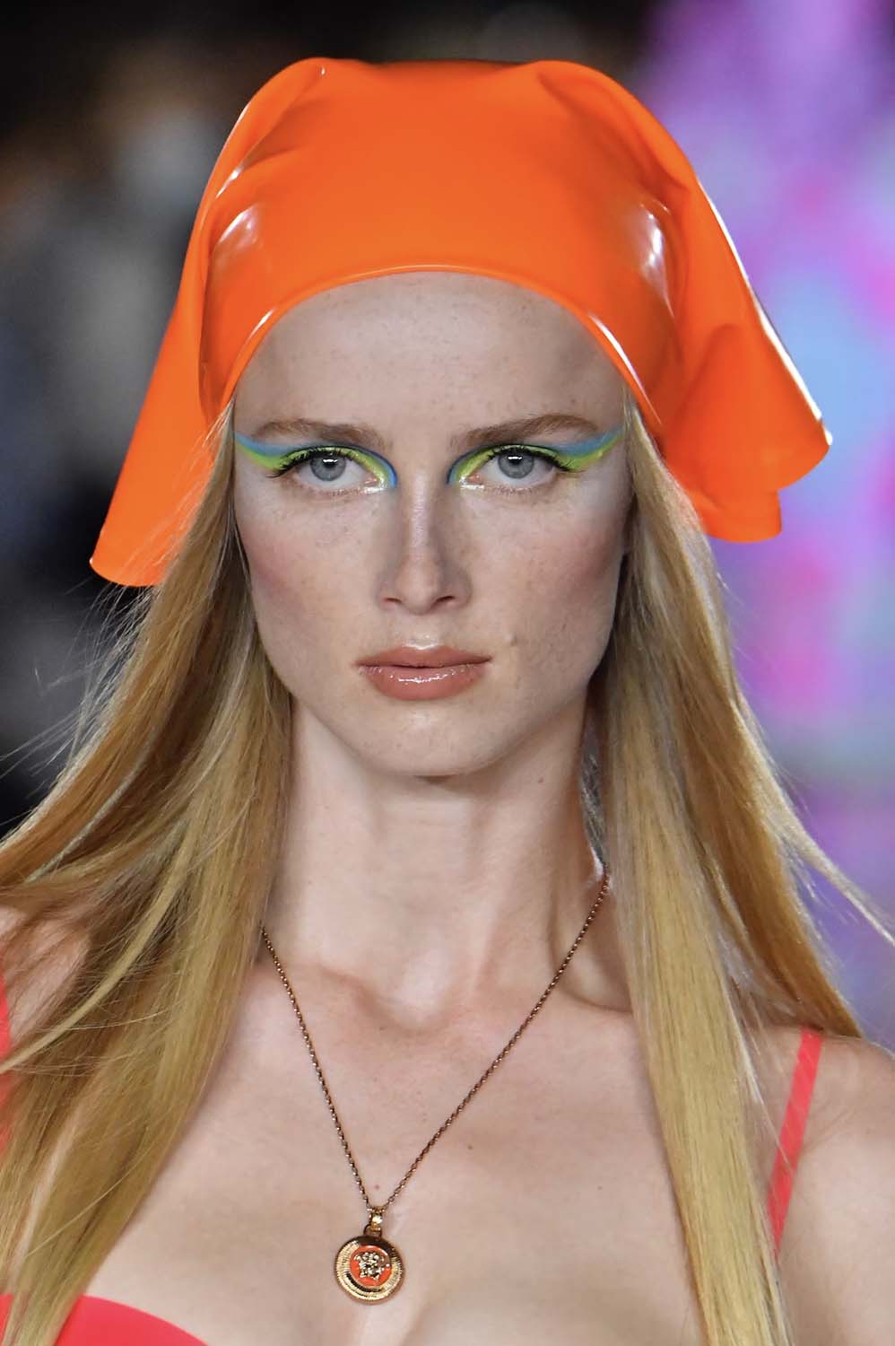 Spring Summer Versace show, opened by Dua Lipa showing off this 3-toned winged eye.