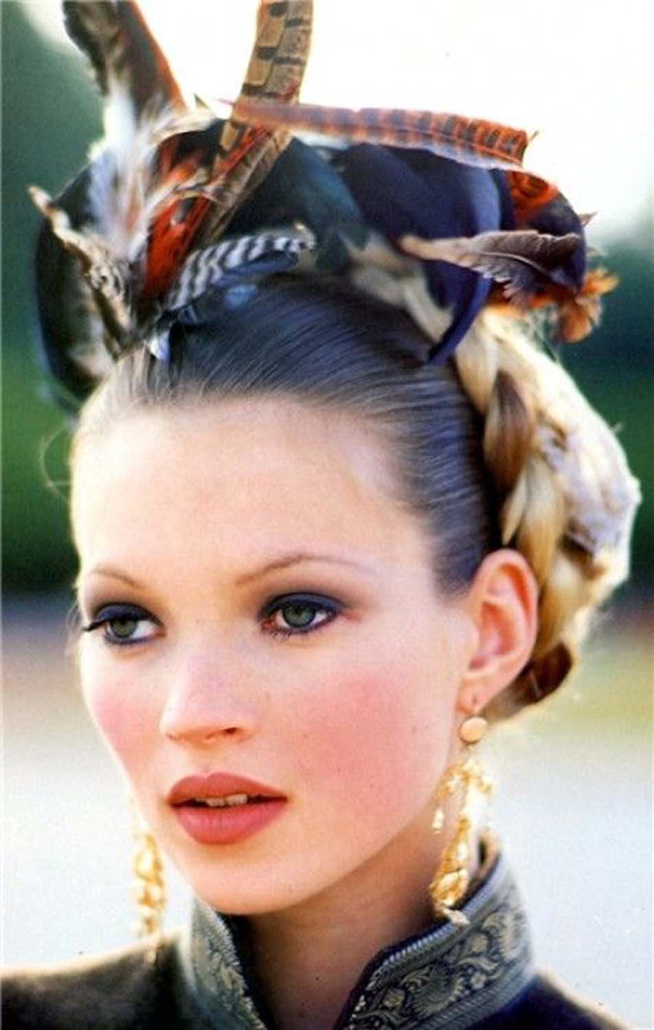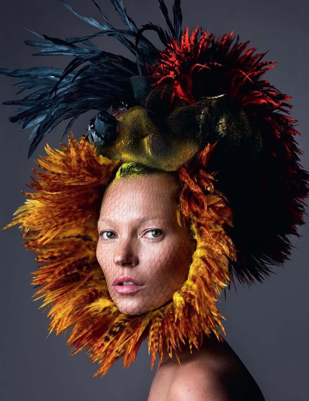 Kate Moss in Julien d'Ys feather headpiece photographed by Mert Alas and Marcus Piggott for Love Magazine, 2012.