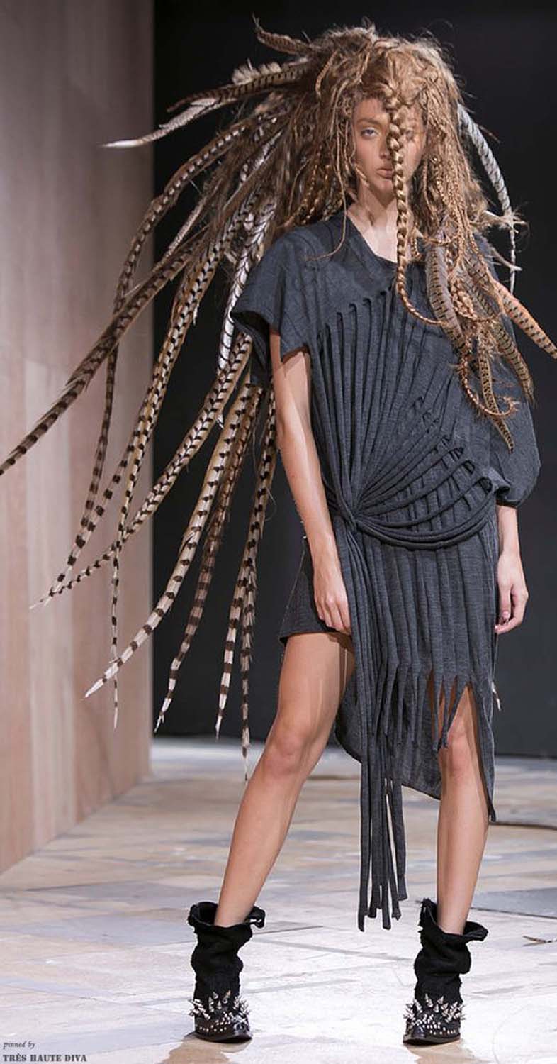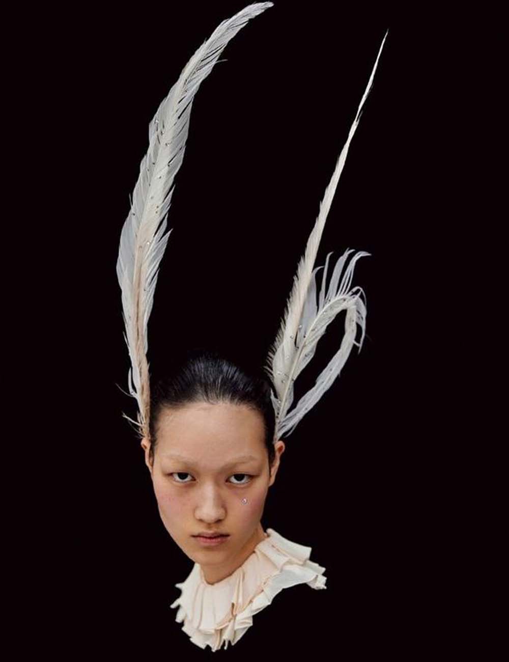 Feathered headpieces by Katsuya Kamo for Junya Watanabe.